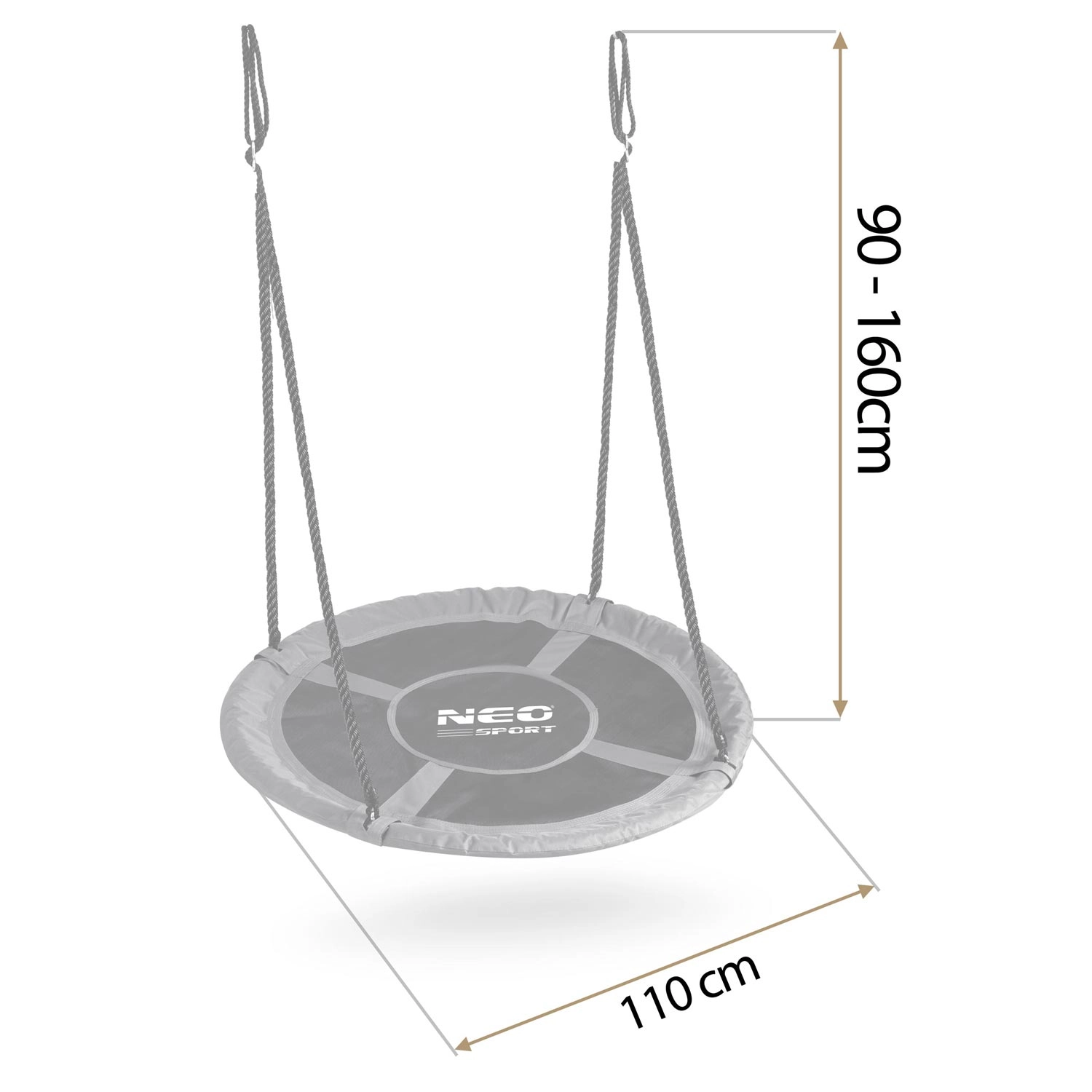 Hniezdová hojdačka NEO-SPORT Swingo 110 cm je ideálna na záhradu aj dvor. Široké a pohodlné sedadlo z odolnej vodoodolnej tkaniny Oxford 600D sa ľahko čistí a je príjemné na dotyk. Oceľová konštrukcia obalená mäkkou PE penou a pevné pletené laná poskytujú stabilitu a bezpečie pre deti aj dospelých.