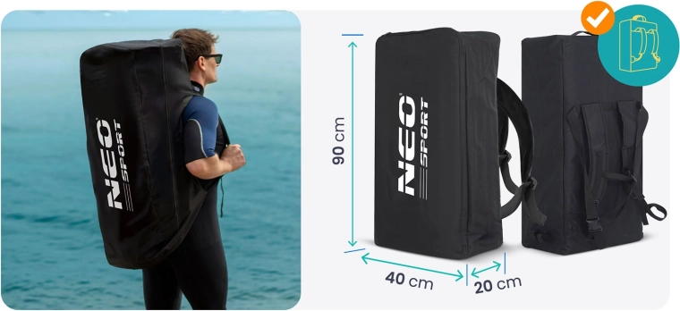V balení nájdete všetko pre okamžité vyplávanie: nastaviteľné hliníkové pádlo (162–210 cm), dvojčinnú pumpu s manometrom, bezpečnostný leash, odnímateľnú plutvu, opravnú sadu a odolný transportný batoh. Predné cargo bungee umožní pripevniť batoh či bundu, praktické madlá uľahčia prenášanie a UV odolný povrch chráni pred slnkom.