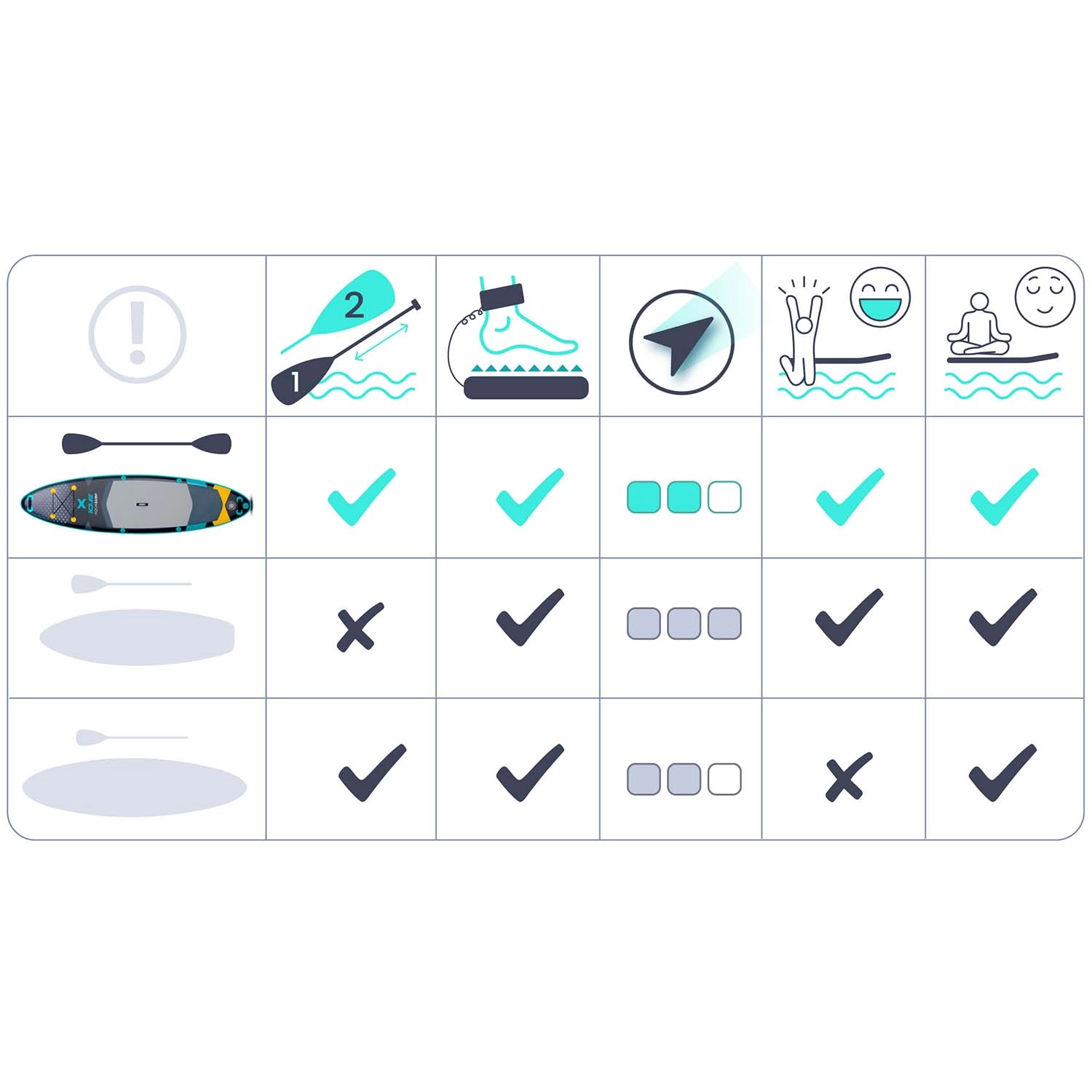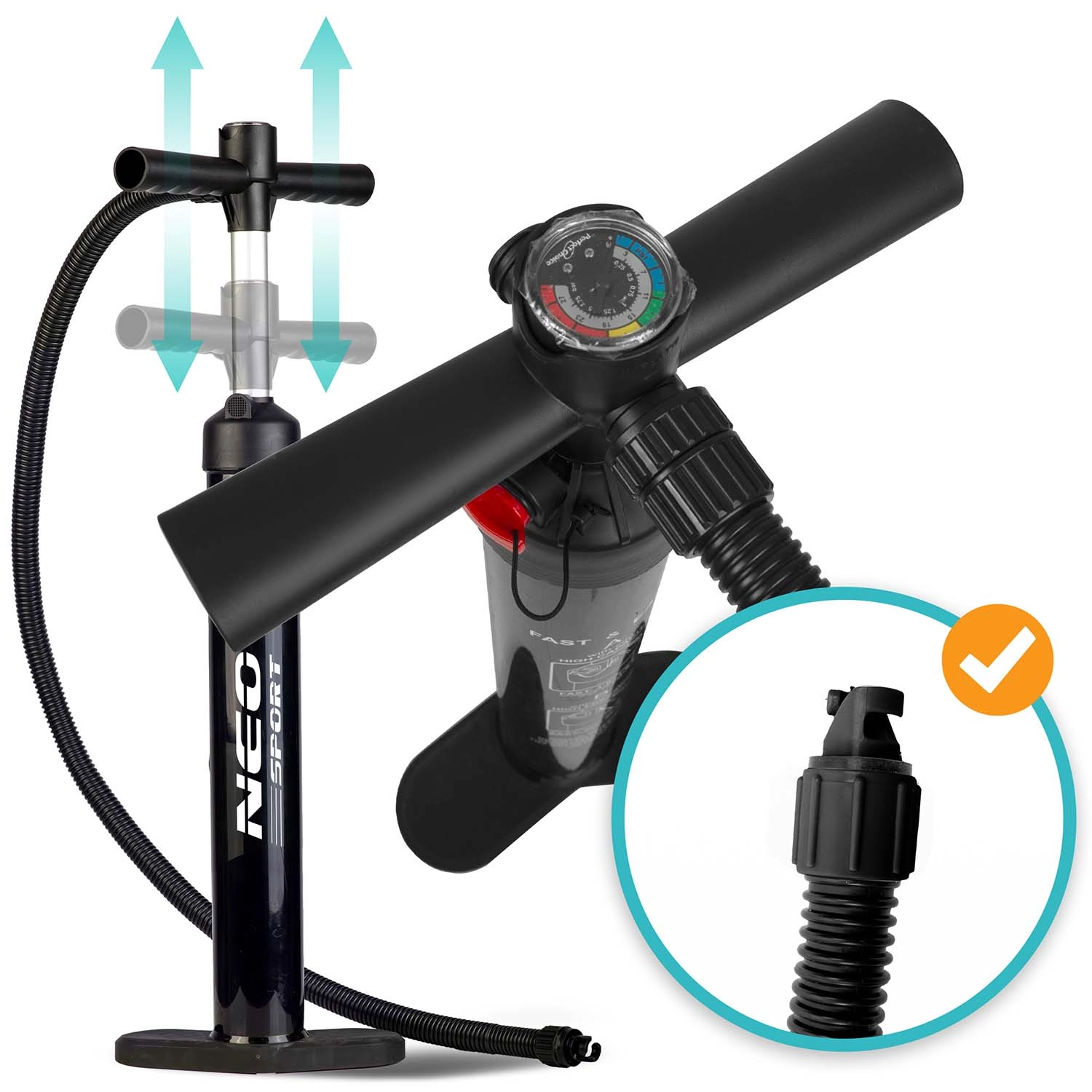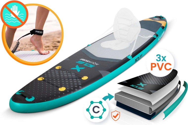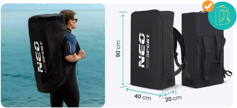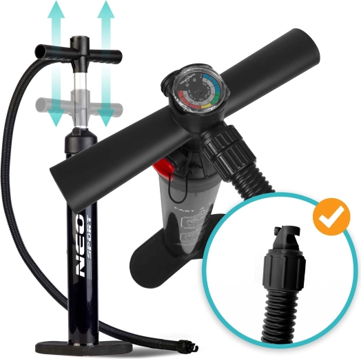 V balení nájdete všetko, čo potrebujete: regulovateľné hliníkové pádlo (162–210 cm), obojsmernú pumpu s manometrom, bezpečnostný leash, odnímateľnú plutvu, opravnú sadu a odolný transportný batoh. Trojvrstvová PVC konštrukcia s technológiou Drop Stitch Light, UV odolný povrch a zosilnené hrany zaručujú dlhú životnosť, či už začínate, alebo chcete posunúť techniku ďalej.