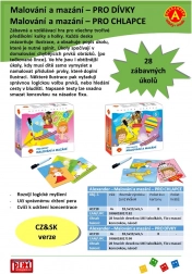 Objavte múdru zábavu pre predškolské deti. Sada obsahuje obojstranné tabuľky s ilustrovanými úlohami, na ktoré možno písať a kresliť priloženou fixkou. Napísané možno jednoducho zotrieť mazacím koncom a úlohy plniť znova a znova. Deti sa hravou formou učia správnemu držaniu pera, koordinácii ruky a oka a získavajú istotu pre budúce písanie.