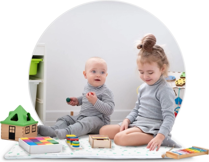 Súčasťou setu je vyberateľná, mäkko vyplnená podložka s protišmykom a tri vankúšiky – ideálne na čítanie, hranie aj krátky odpočinok.