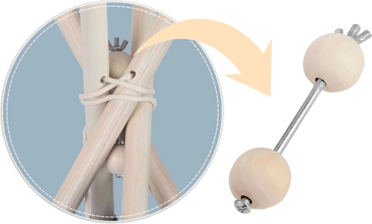 Štyri borovicové tyče a priložený stabilizátor držia tvar teepee, zvyšujú bezpečnosť a zabezpečujú pevnosť pri hraní.