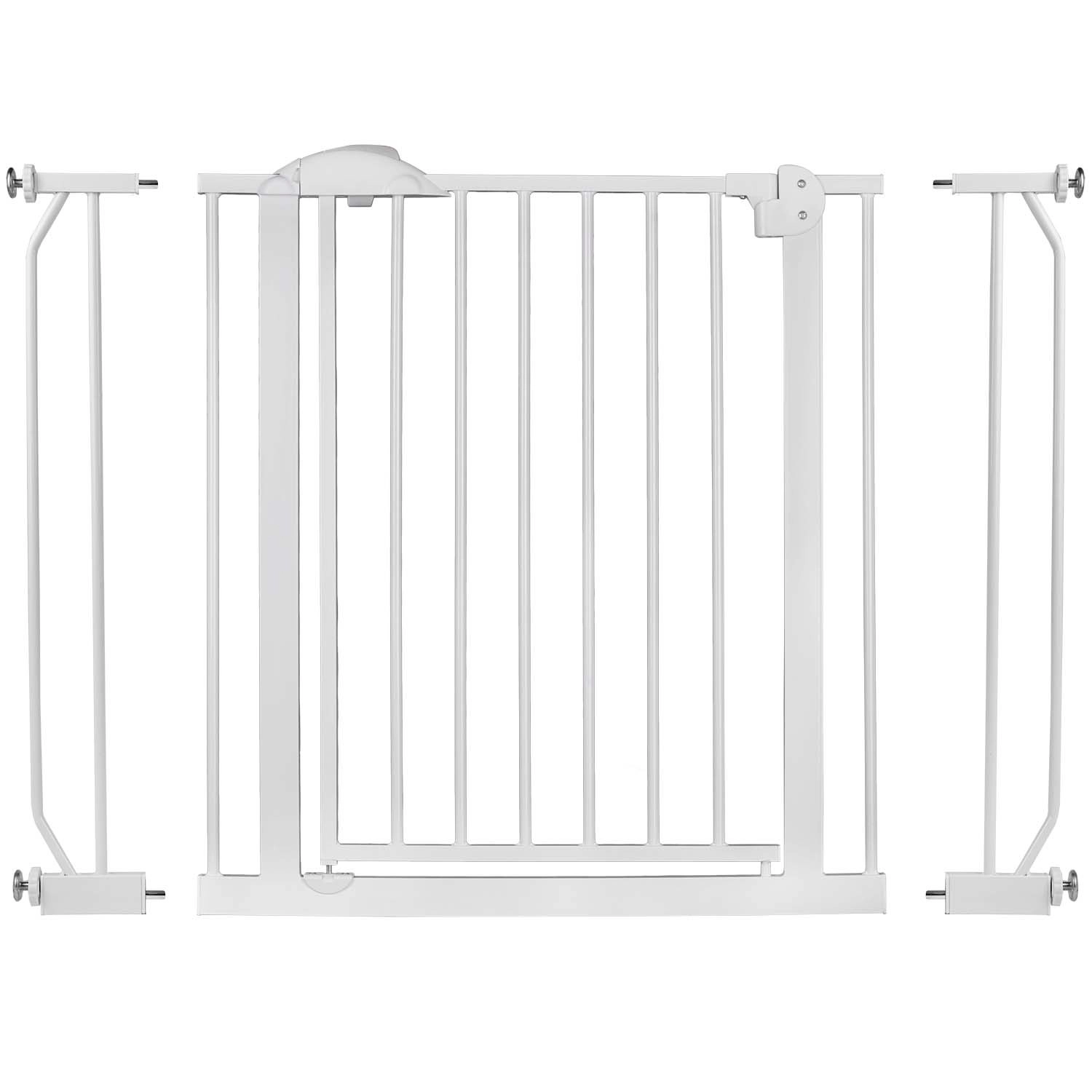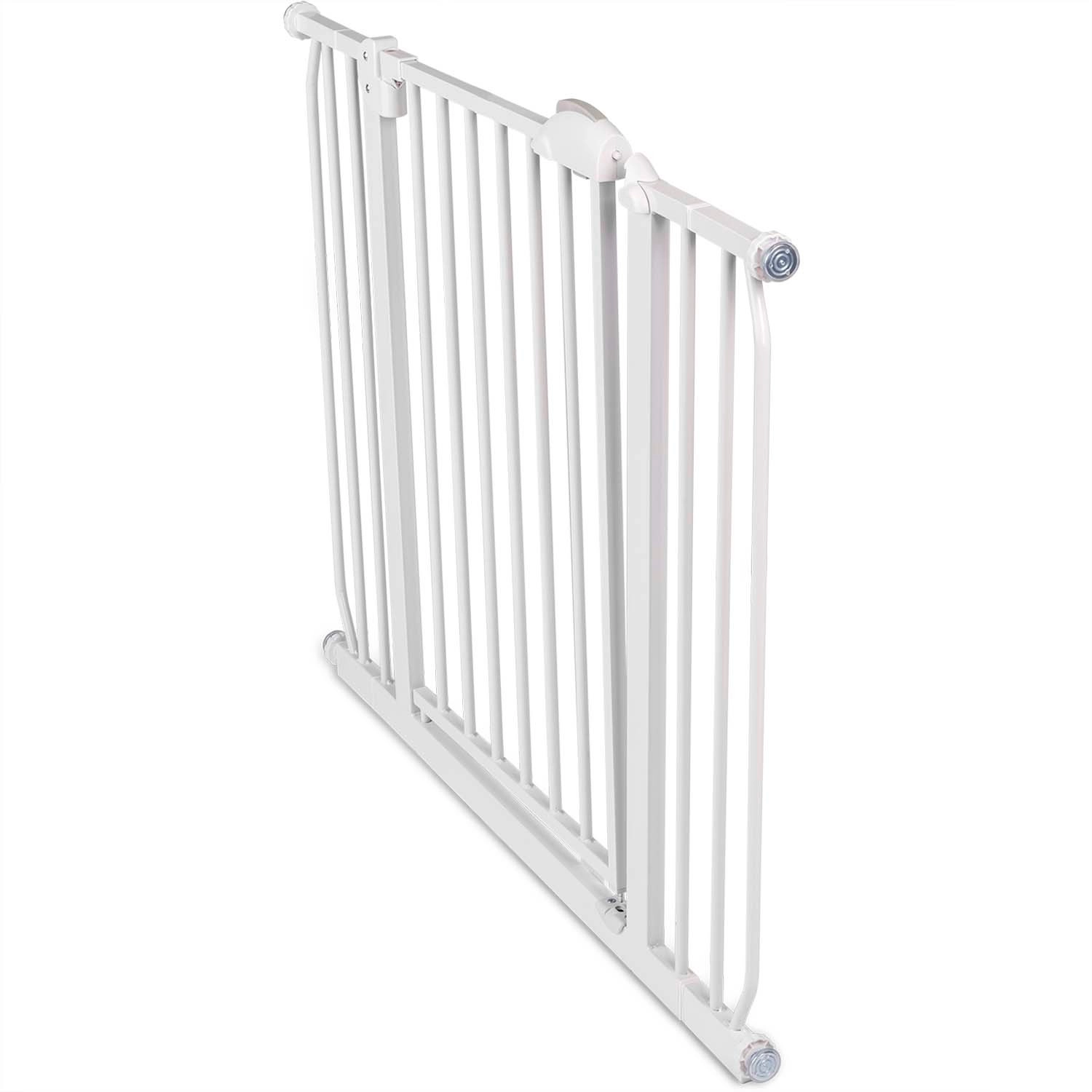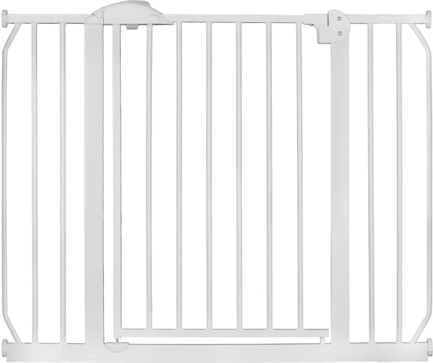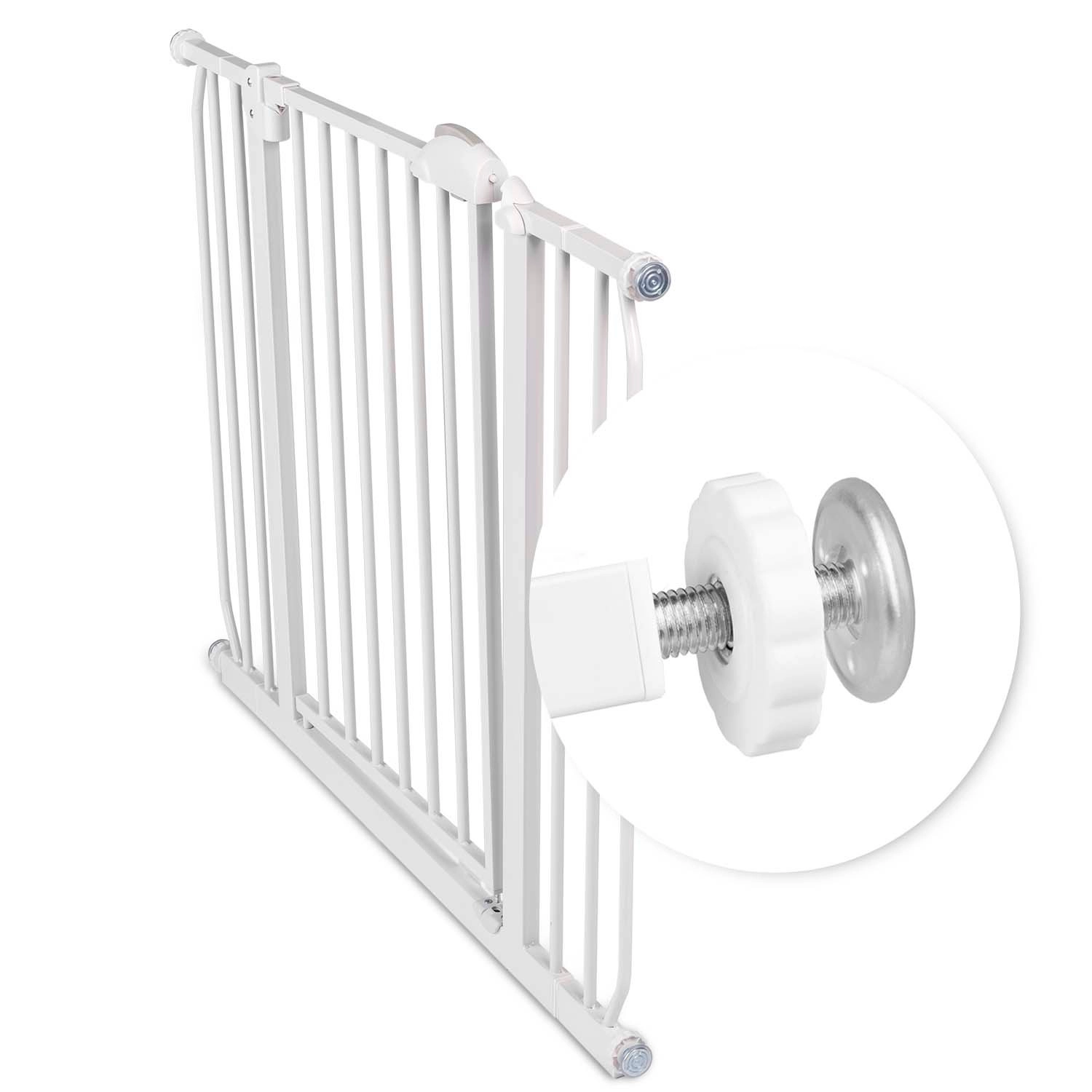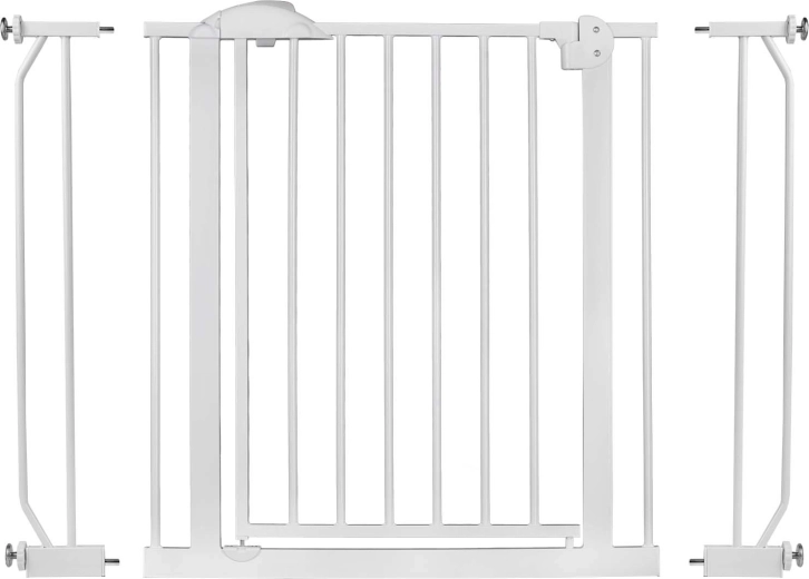 Praktická biela bezpečnostná bránka NUKIDO chráni deti aj domácich miláčikov pred vstupom na schody či do nebezpečných miest. Inštaluje sa bez vŕtania pomocou rozpieracieho systému, má nastaviteľnú šírku 75–105 cm a ľahké otvorenie jednou rukou. Vďaka kovovej konštrukcii, dvojitému zámku a certifikácii EN 1930:2011 ponúka spoľahlivú a štýlovú ochranu v každom interiéri.