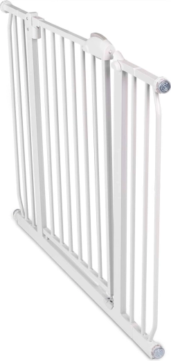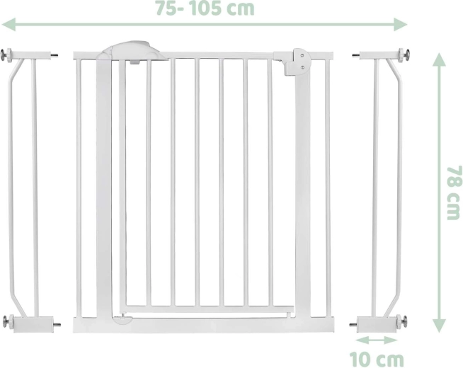 Vďaka plynulej regulácii šírky 75–105 cm a priloženým predĺženiam zábranu ľahko prispôsobíte väčšine dverí a priechodov. Bránka sa otvára obojsmerne, možno ju ovládať jednou rukou a v prípade potreby zablokovať iba na jeden smer alebo fixovať v polohe 90° pre pohodlný priechod.