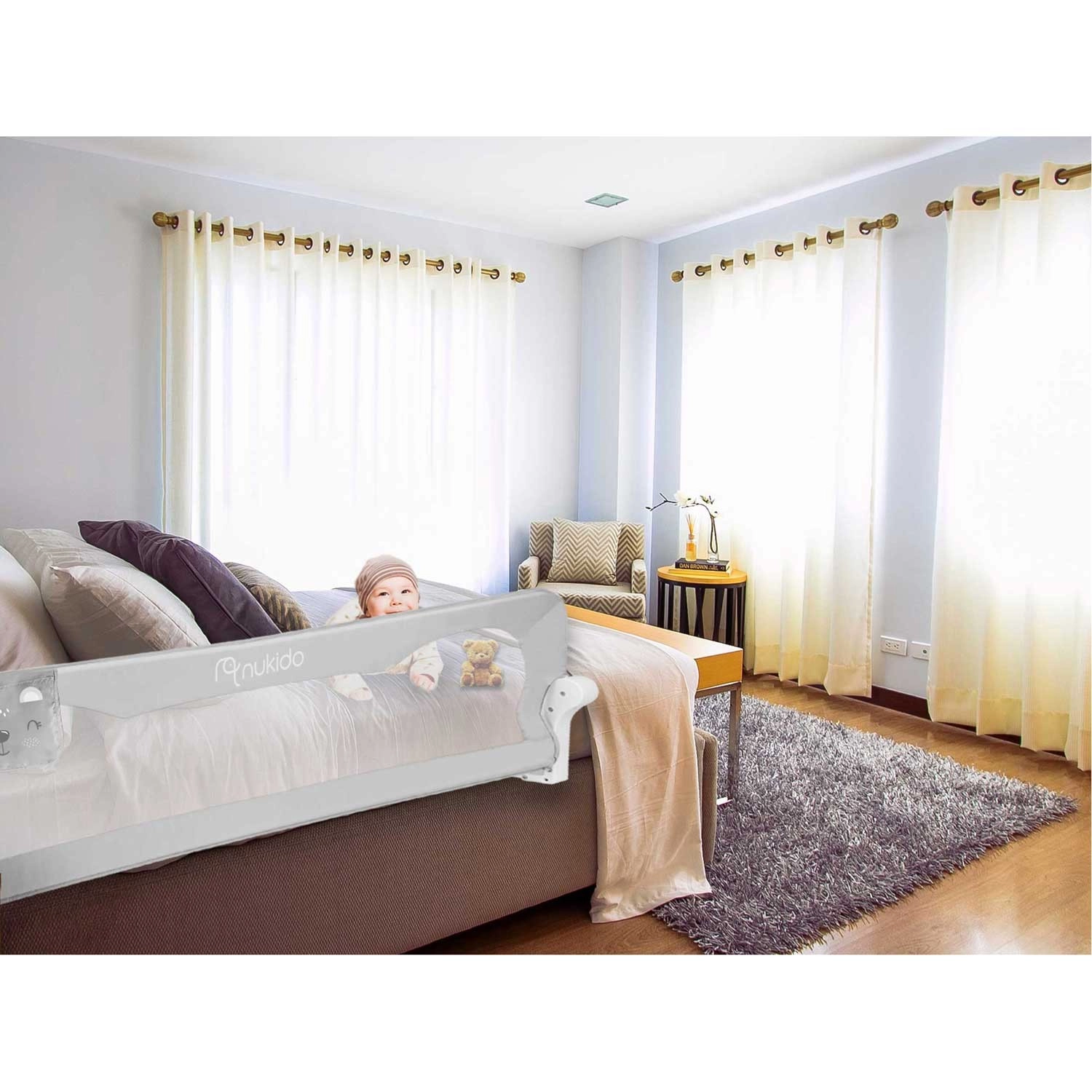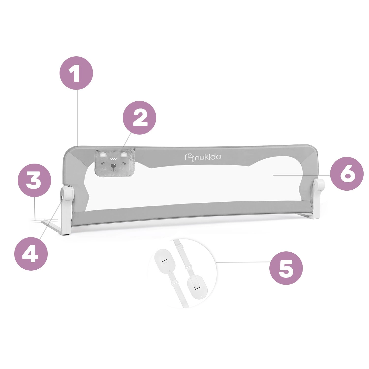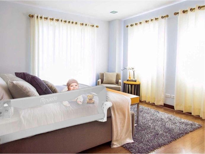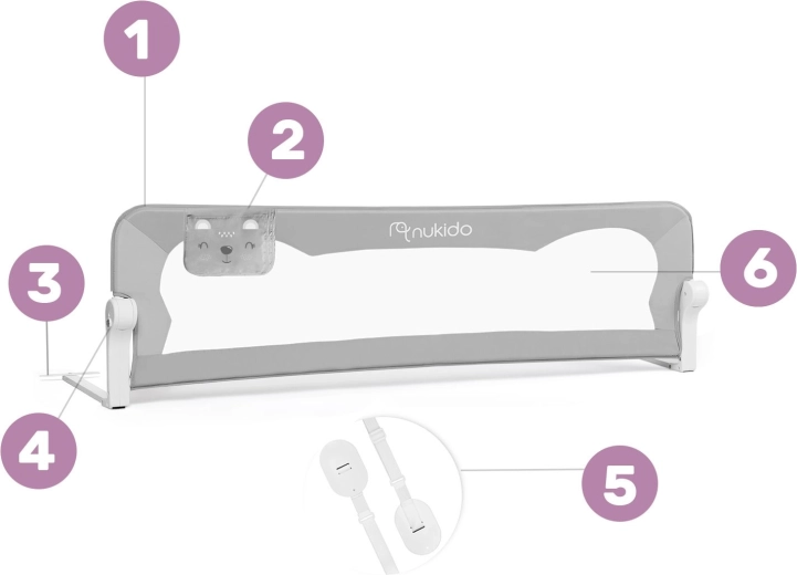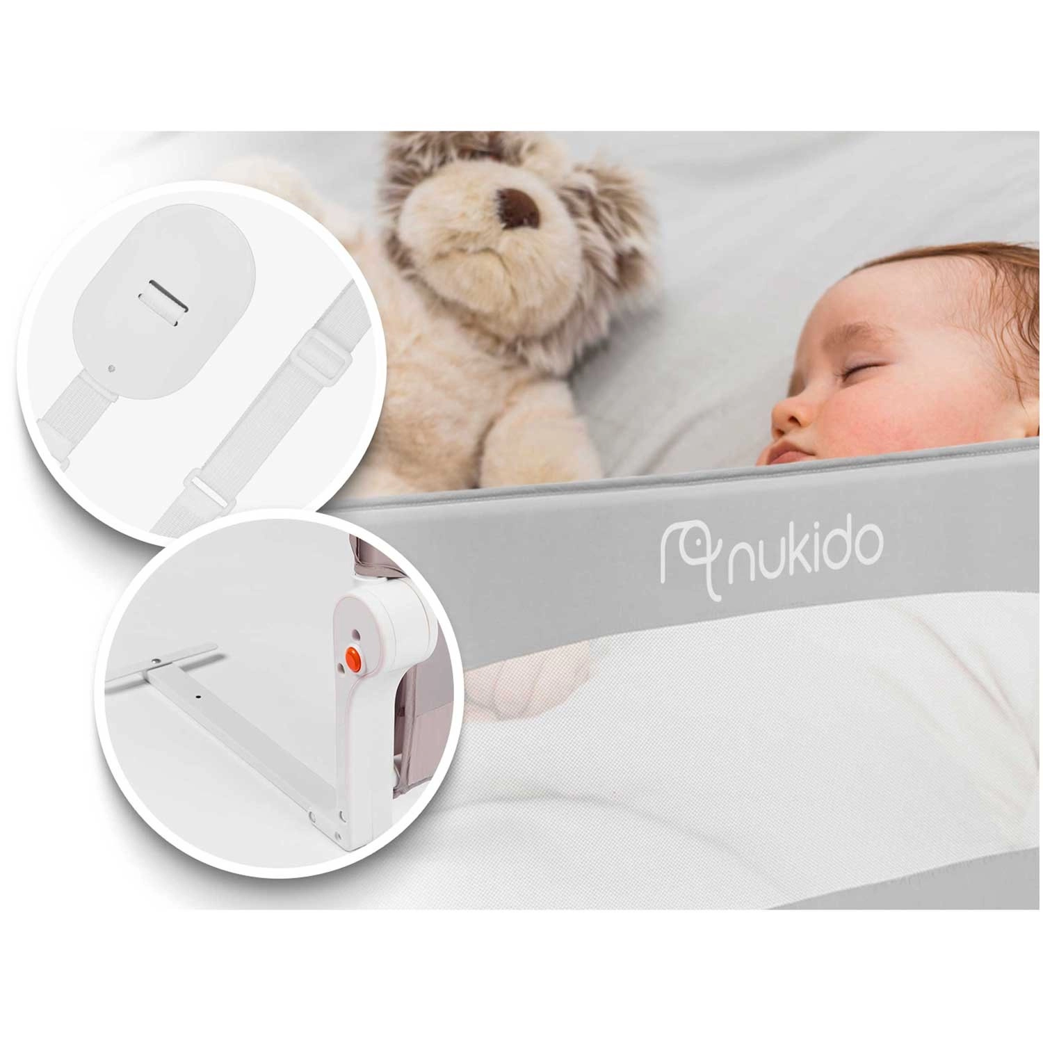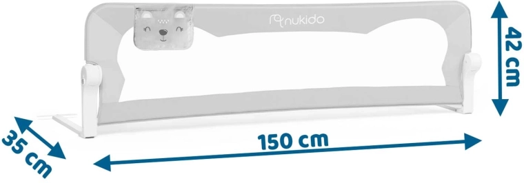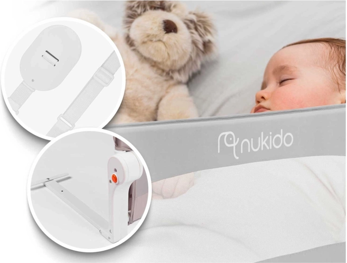 Detská zábrana na posteľ Nukido bola navrhnutá pre maximálne bezpečie a pohodlie pri každodennom používaní. Odolný, no ľahký oceľový rám drží tvar, zatiaľ čo jemná a trvácna sieťovina zaisťuje skvelú viditeľnosť na spiace bábätko a dostatočné vetranie. Vďaka aretácii proti samovoľnému zloženiu zostáva zábrana pevne na mieste aj počas živšej hry.