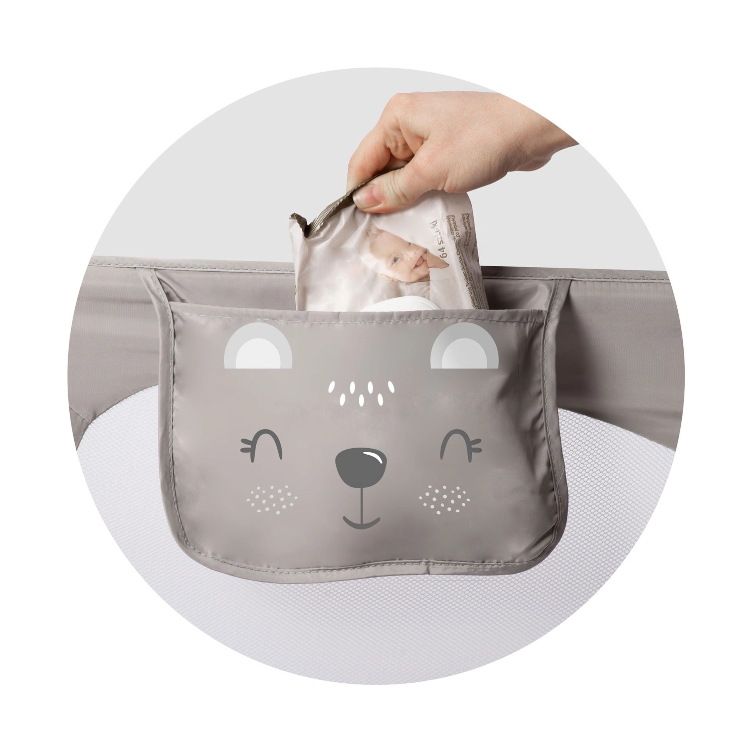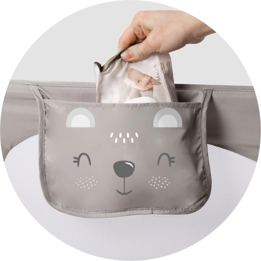 Inštaláciu zvládnete počas chvíľky – zábranu možno prišraubovať k rámu postele alebo ju upevniť pomocou popruhov SafetyBelt (možno kombinovať pre vyššiu stabilitu). Praktické vrecko udrží poruke cumlík, hračku či iné drobnosti. Funkcia skladania o 180° umožní ľahký prístup k dieťaťu bez nutnosti demontáže.