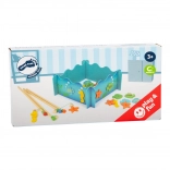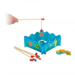 Deti lovia farebné rybky a morské koníky pomocou drevených prútov s magnetom. Jednoduchý princíp, veľká porcia zábavy a tréning jemnej motoriky.