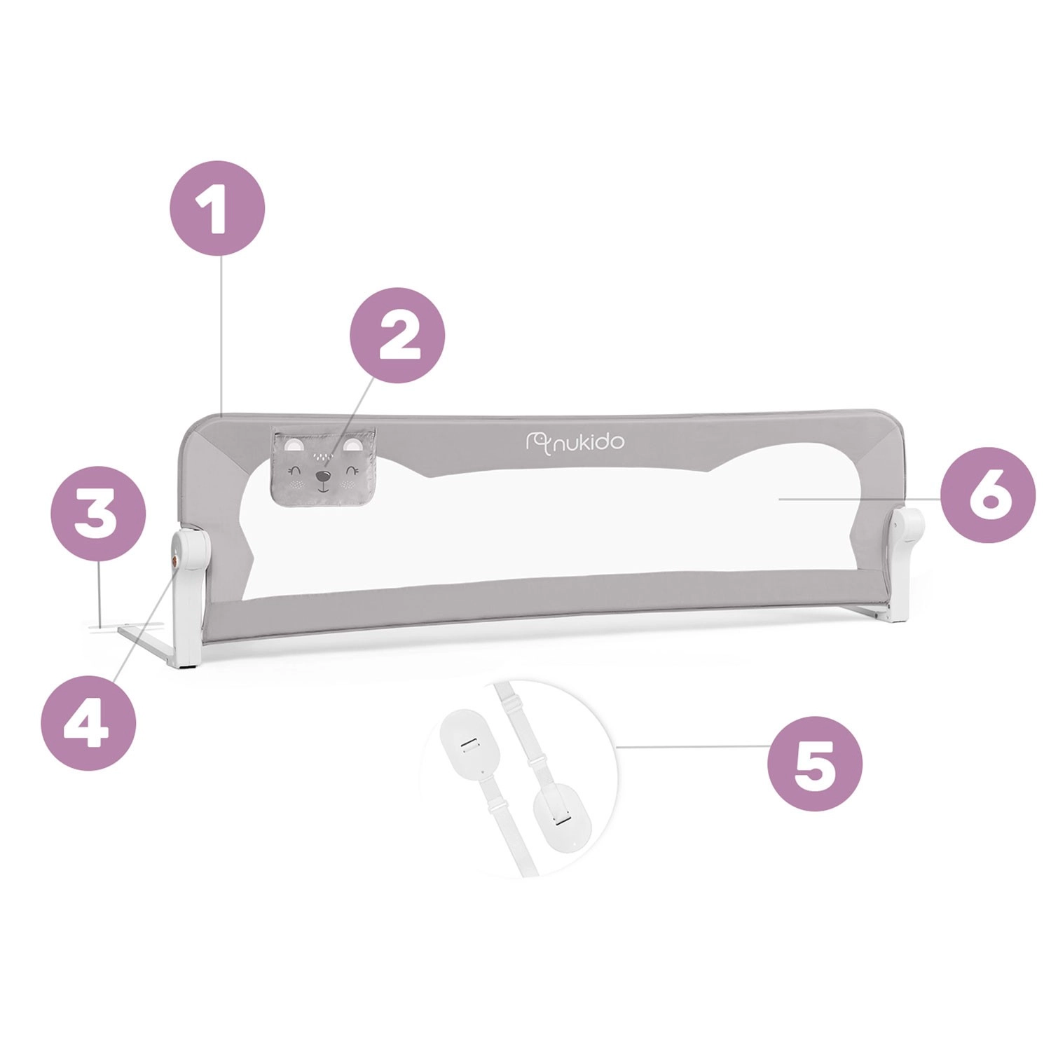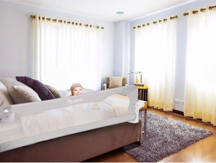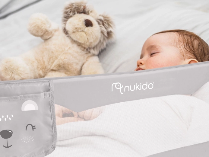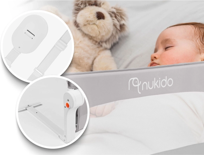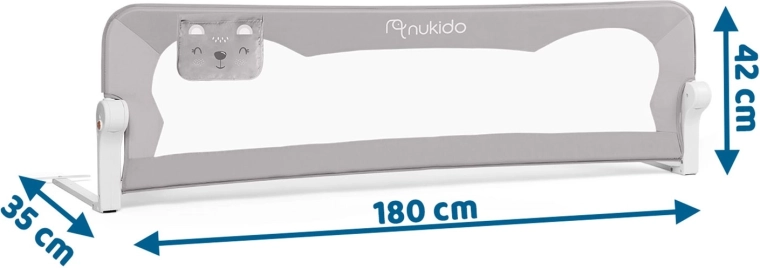 Posteľná zábrana Nukido v sivej farbe je ideálnym riešením pre bezpečný spánok detí. Odolná konštrukcia z ľahkej, ale pevnej ocele zaistí dlhú životnosť, zatiaľ čo priedušná sieťovina poskytne skvelú viditeľnosť a cirkuláciu vzduchu. Vďaka sklápaníu až o 180° možno zábranu jednoducho sklopiť, keď potrebujete prístup k posteli, bez nutnosti demontáže.