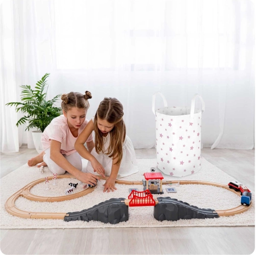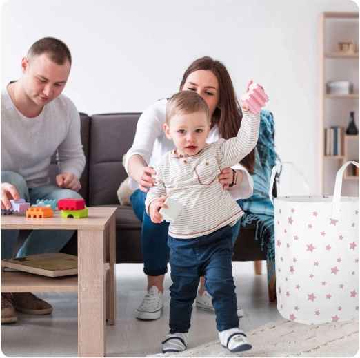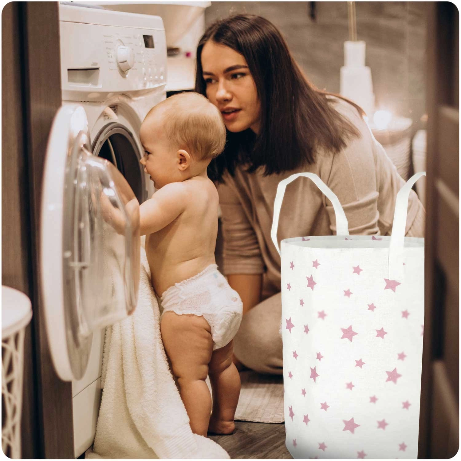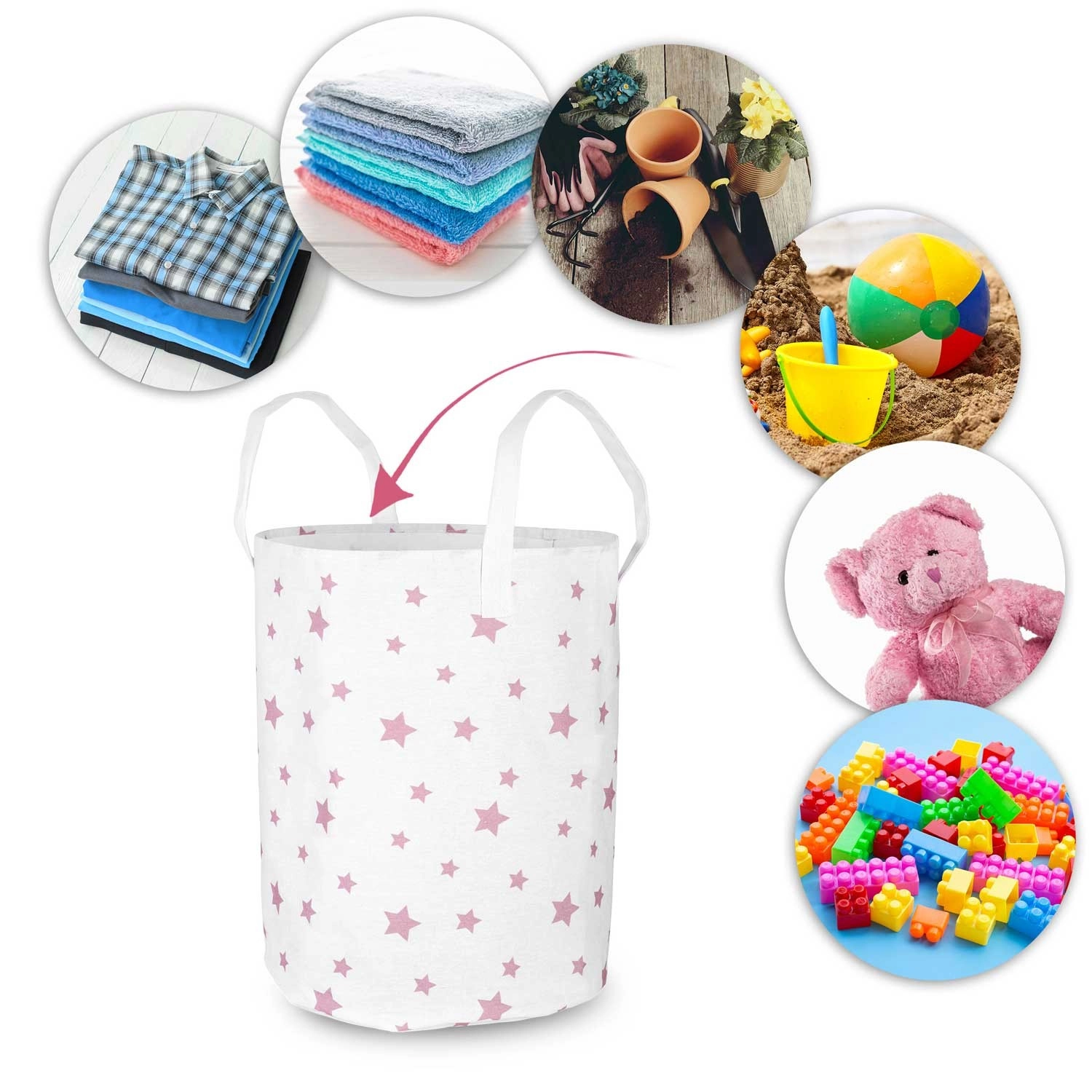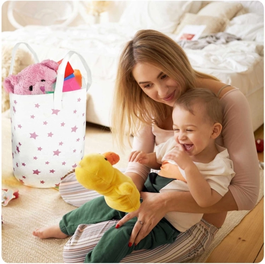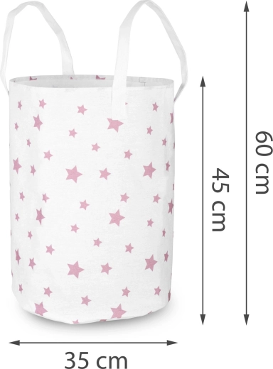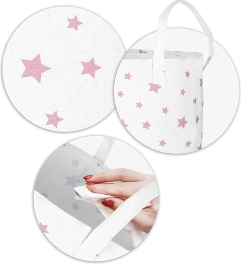 Štýlový kôš Nukido prináša šikovné riešenie na ukladanie hračiek, bielizne či textílií. Jemný vzor ružových hviezdičiek doladí interiér detskej izby, herne aj kúpeľne a pomôže rýchlo upratať neporiadok. Vďaka ľahkej, ale pevnej textilnej konštrukcii kôš ľahko prenesiete kamkoľvek potrebujete.