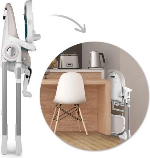 Po zložení stolička zaberie minimum miesta, takže je ideálna aj do menších bytov. Certifikácia EN 14988 potvrdzuje splnenie prísnych európskych štandardov. Nukido Belo je tak praktickým riešením od prvých príkrmov až po samostatné stolovanie.