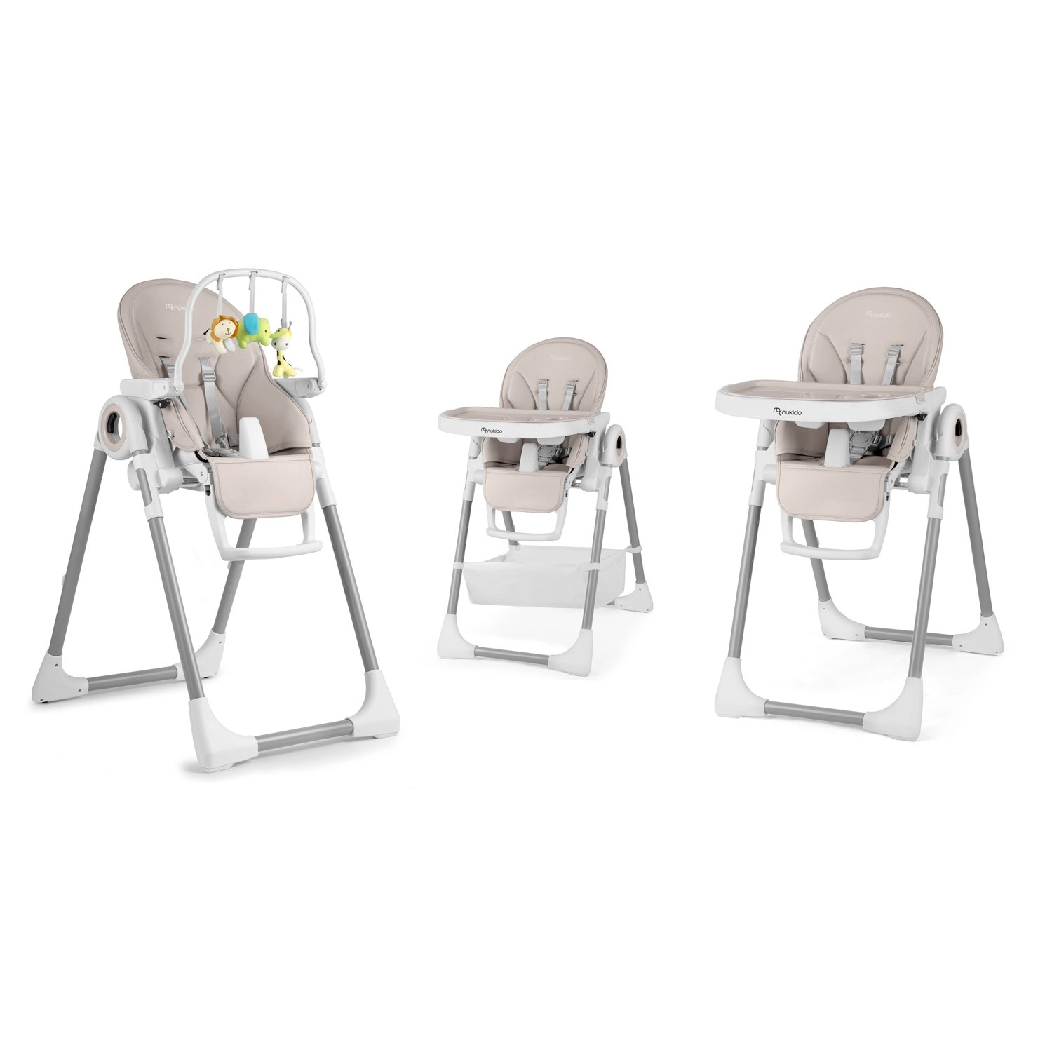 Nukido Belo sivá multifunkčná jedálenská stolička s ležadlom a táckou