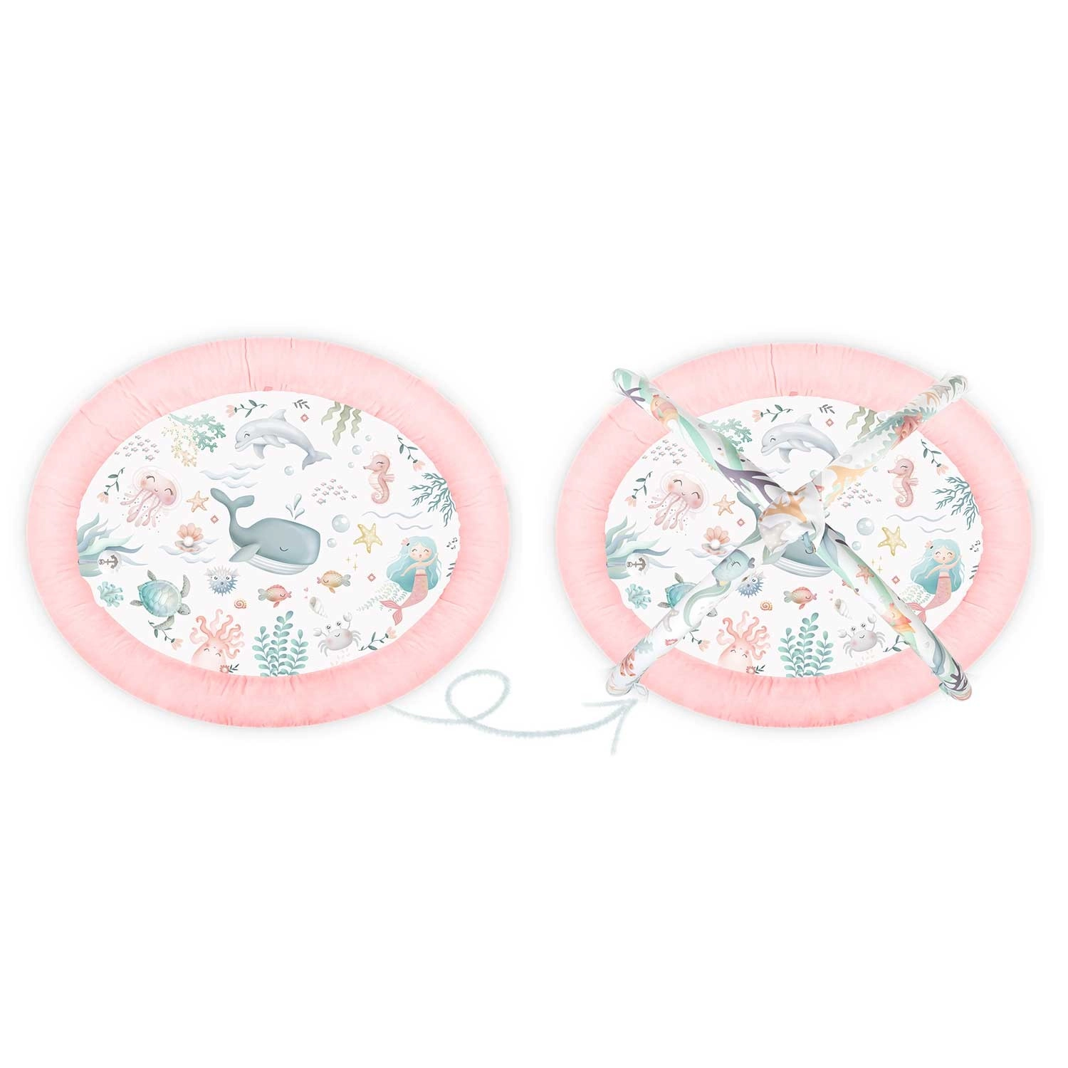 Hracia deka Nukido Ocean – ružová vytvára útulné a bezpečné prostredie na každodenné hranie aj oddych. Odnímateľné oblúky s pestrofarebnými morskými motívmi a závesnými hračkami prirodzene podporujú rozvoj zraku, hmatu a motoriky. Vďaka mäkkému, odolnému a ľahko čistiteľnému povrchu je deka pripravená na každodenné dobrodružstvá.