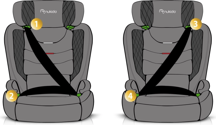 - ISOFIX + vedenie pásu – stabilné uchytenie a intuitívne navádzanie bezpečnostného pásu.