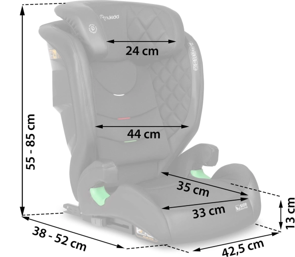 Autosedačka Nukido Louis ponúka kombináciu prémiovej bezpečnosti, pohodlia a jednoduchej inštalácie ISOFIX pre deti s výškou 100–150 cm (cca 4–12 rokov). Má SIP bočnú ochranu, 12 úrovní nastavenia opierky hlavy, 2 polohy náklonu a ľahko snímateľný poťah vhodný na pranie. Spĺňa prísnu normu ECE R129 / i-Size a možno ju používať aj ako samostatný podsedák pre staršie deti.