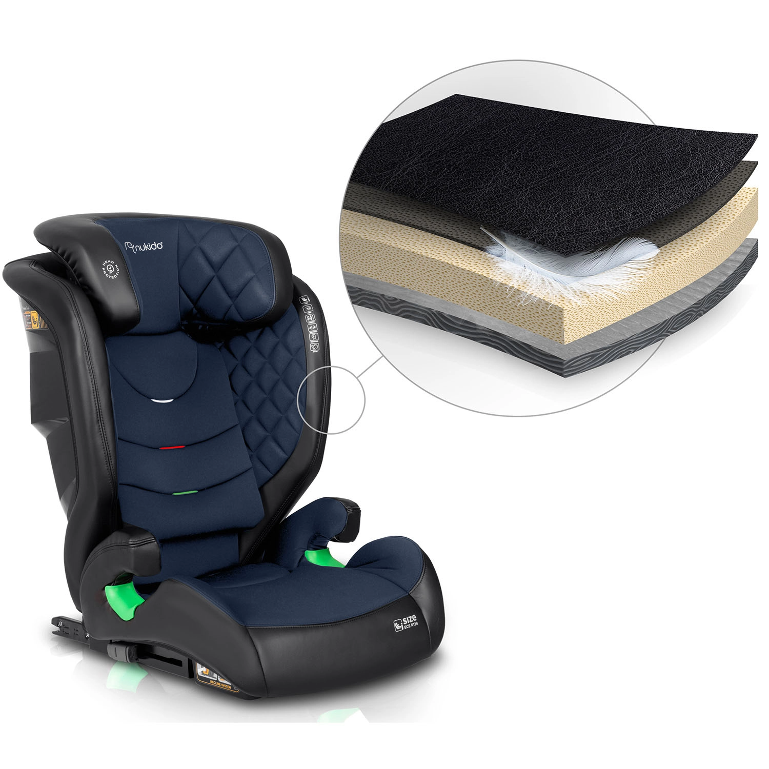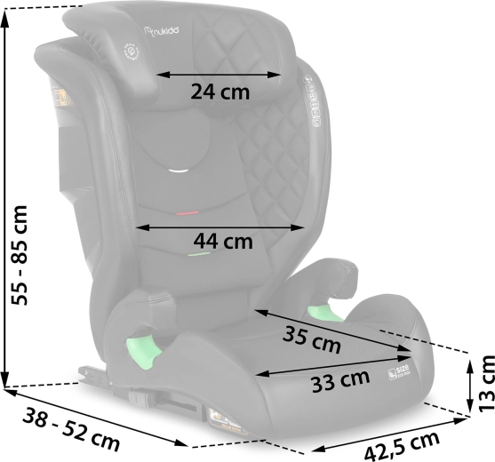 Autosedačka Nukido Louis je bezpečná a pohodlná voľba pre deti vysoké 100–150 cm (cca 4–12 rokov). Spĺňa ECE R129 i-Size, ponúka ISOFIX pre rýchlu a stabilnú inštaláciu, 12 úrovní nastavenia opierky hlavy, dvojstupňový náklon a bočnú ochranu SIP. Jednoduchú údržbu zabezpečuje ľahko snímateľný poťah s možnosťou prania a prémiové polstrovanie pre dlhodobé pohodlie.
