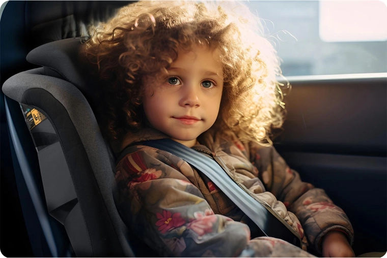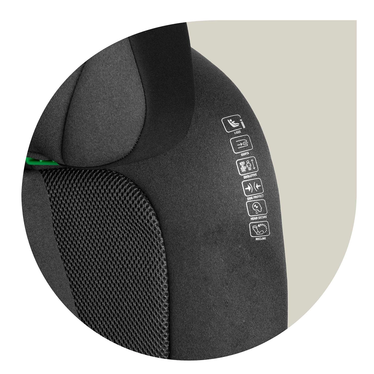 Homologácia ECE R129 (i-Size) a zosilnená bočná konštrukcia so systémom SIP chránia hlavu, krk aj chrbticu pri bočnom náraze. Viacvrstvová výplň pohlcuje energiu a zvyšuje bezpečnosť.