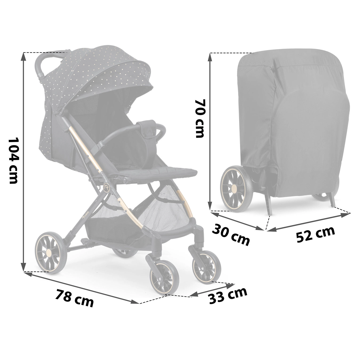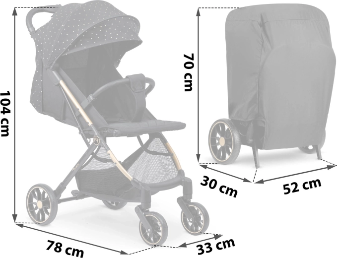 - Kompaktné rozmery po zložení, vhodné do lietadla (kabinové rozmery sa môžu líšiť podľa aeroliniek)