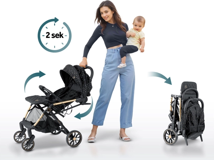 - Bezpečnosť na prvom mieste: päťbodové pásy, zadná brzda, stabilný rám.