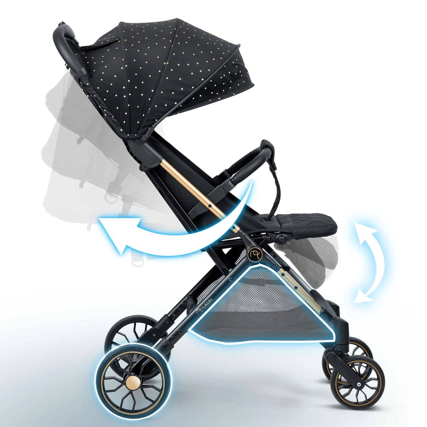 Ľahký a odolný kočík Nukido Paseo je spoľahlivým parťákom na každodenné prechádzky aj cestovanie s deťmi do 36 mesiacov. Ponúka rýchle zloženie jednou rukou za 2 sekundy, predné otočné kolesá 360° s odpružením, veľké zadné kolesá do terénu a päťbodový bezpečnostný pás. Vďaka kompaktným rozmerom po zložení sa zmestí do batožinového priestoru a je vhodný aj do lietadla. Rozšíriteľná strieška s ochranou proti dažďu a UV, polohovateľná opierka chrbta až do ľahu a nastaviteľná opierka nôh zaistia dieťaťu pohodlie v každom počasí.