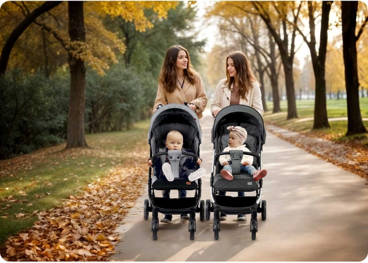 Jednoduché manévrovanie v úzkych priestoroch a plynulá jazda po nerovnostiach. Odpruženie znižuje otrasy pre väčšie pohodlie a ochranu dieťaťa.