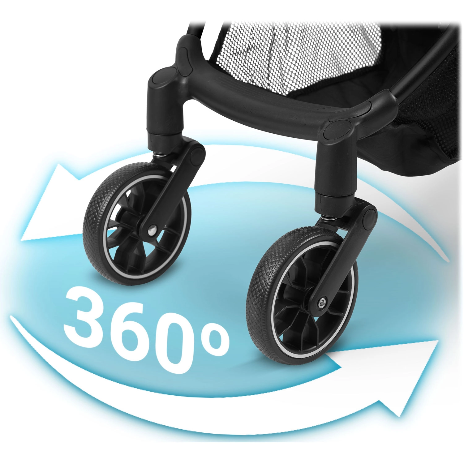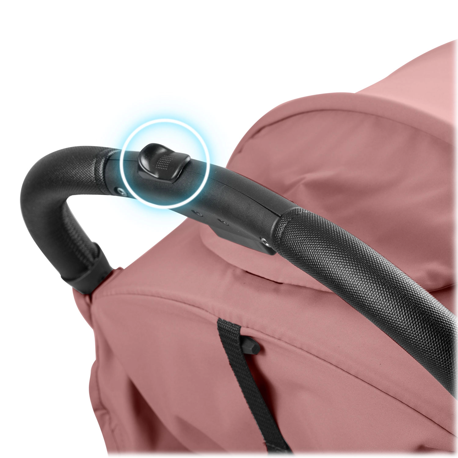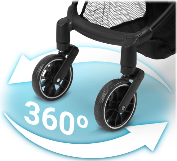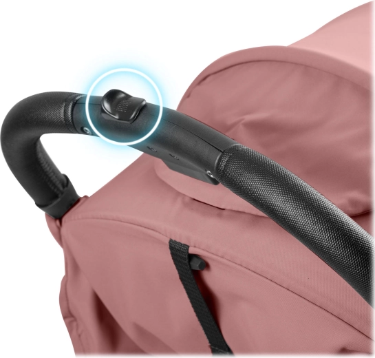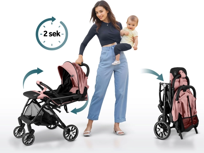 Intuitívne tlačidlo umožní bleskové zloženie jednou rukou. Kočík po zložení stojí sám a zmestí sa do príručnej veľkosti – ideálny do auta aj do lietadla.