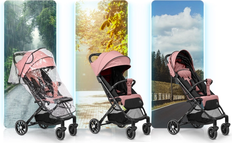 - Do každého počasia: striešku možno prispôsobiť slnku aj dažďu, pláštenka je súčasťou balenia.