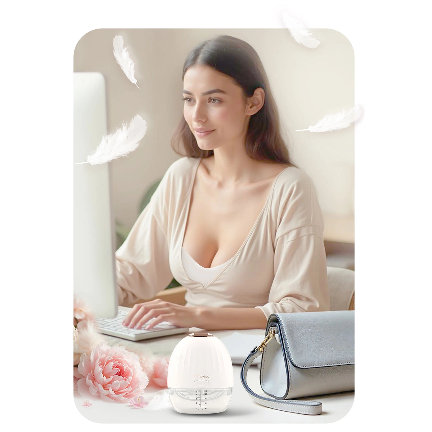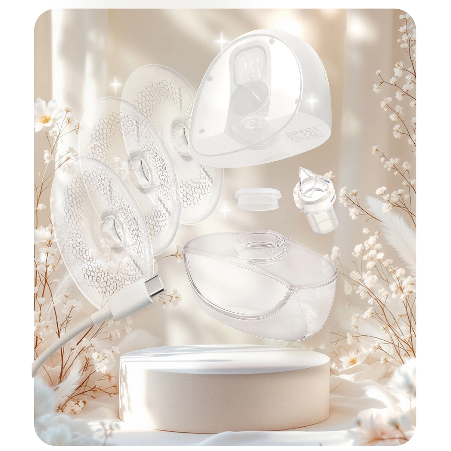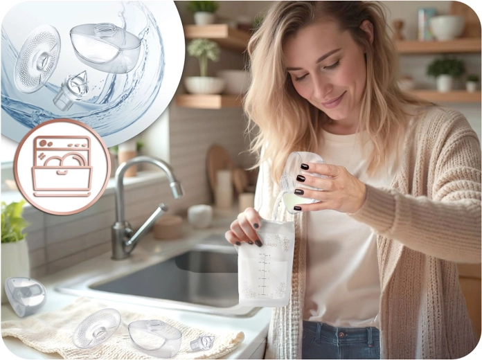 Vďaka bezdrôtovej prevádzke a nabíjaniu cez USB‑C si odsávačku jednoducho vezmete do práce, na cesty aj na oddych. Masážne silikónové nástavce v troch veľkostiach jemne stimulujú tok mlieka a poskytujú príjemnú úľavu. Nádobka s objemom 150 ml má bezpečnostnú zátku proti rozliatiu. Všetky nemotorizované časti možno umývať v umývačke, čo šetrí čas a zaisťuje vysokú hygienu.