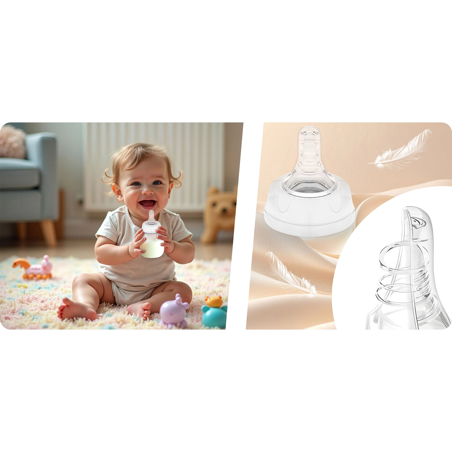 - Praktické príslušenstvo: ochranné krytky cumlíkov a zátky proti rozliatiu