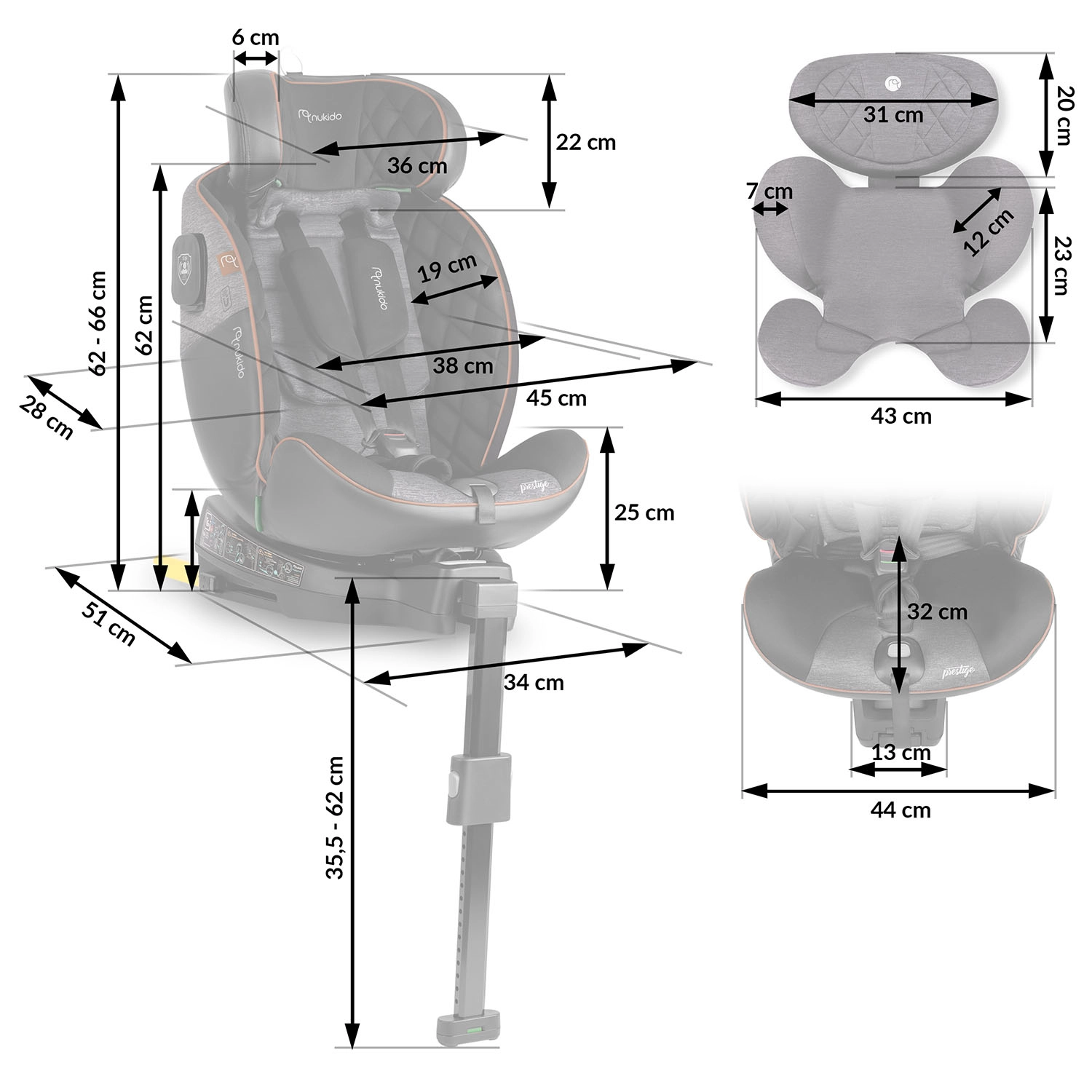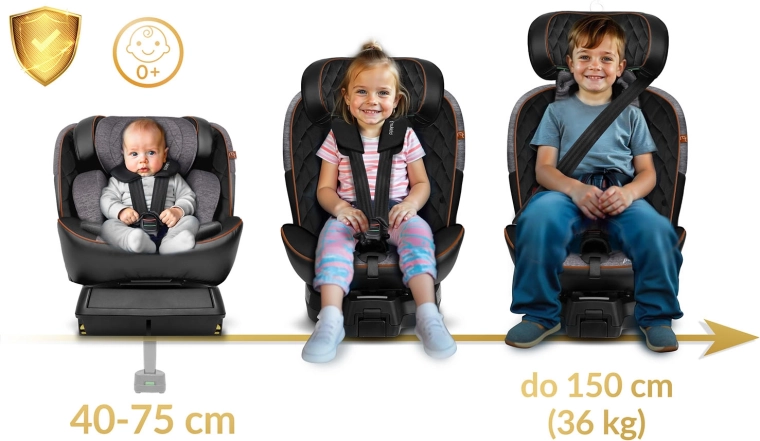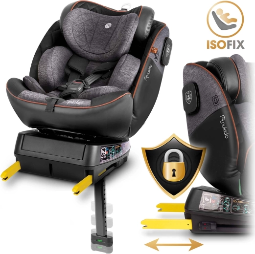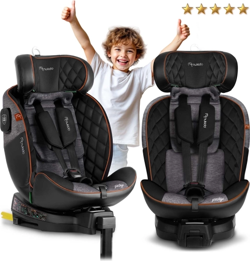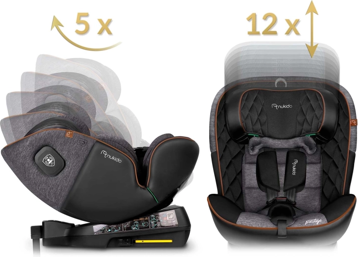 Autosedačka Nukido Prestige Line je navrhnutá podľa normy ECE R129 i-Size pre výšku 40–150 cm a sprevádza dieťa od narodenia až približne do 12 rokov. Vďaka otočnej základni 360° ľahko pripútate dieťa bokom ku dverám a potom autosedačku zaistíte do požadovanej polohy. SIP – Side Impact Protection s vystuženými bočnicami chráni hlavu, krk aj chrbticu pri bočnom náraze, zatiaľ čo ISOFIX a stabilizačná noha zaručujú pevné a rýchle upevnenie.