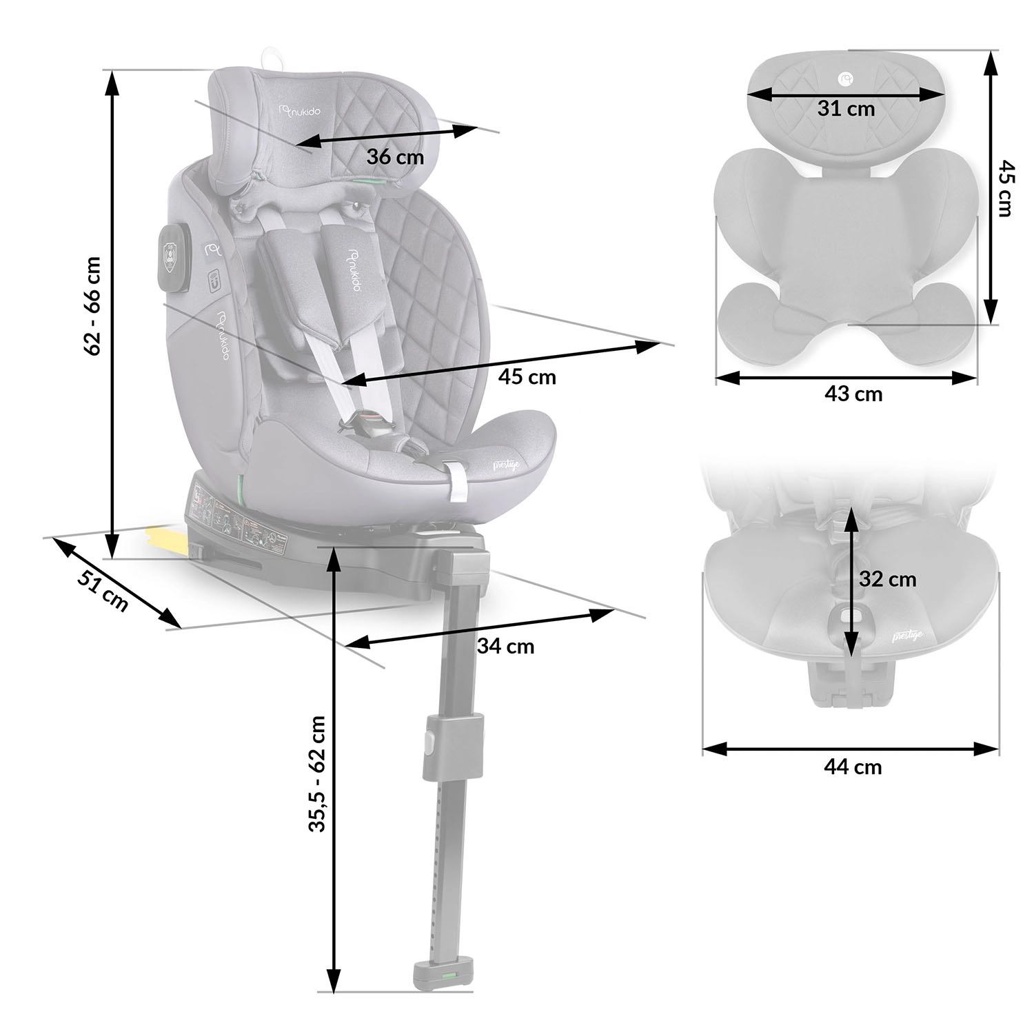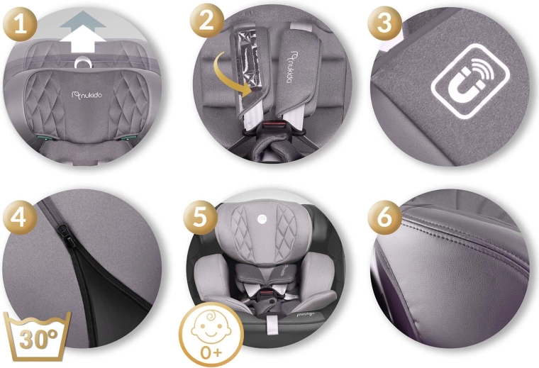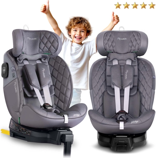 Autosedačka Nukido Prestige Line kombinuje špičkové bezpečnostné prvky s maximálnym komfortom a praktickosťou na každodenné cestovanie. Vďaka otočnej základni 360° ľahko pripútate dieťa z boku, zatiaľ čo SIP – Side Impact Protection s vystuženými bočnicami chráni hlavu, krk aj chrbticu pri bočnom náraze. Konštrukcia zodpovedá norme ECE R129 (i-Size) a rastie s dieťaťom od narodenia až približne do 12 rokov.