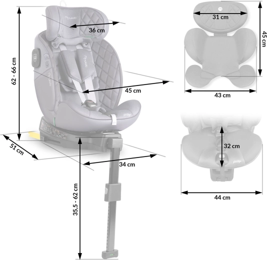 Inštalácia je rýchla a istá vďaka ISOFIX a stabilizačnej nohe (do 100 cm), päťstupňové polohovanie sklonu zaistí pohodlie pri spánku a 12 pozícií opierky hlavy perfektne prispôsobí sedadlo aktuálnej výške dieťaťa. Pre najmenších je pripravená novorodenecká vložka, päťbodové pásy s protišmykovými chráničmi a praktické magnety na uchytenie pásov uľahčujú usadzovanie bez zamotávania.