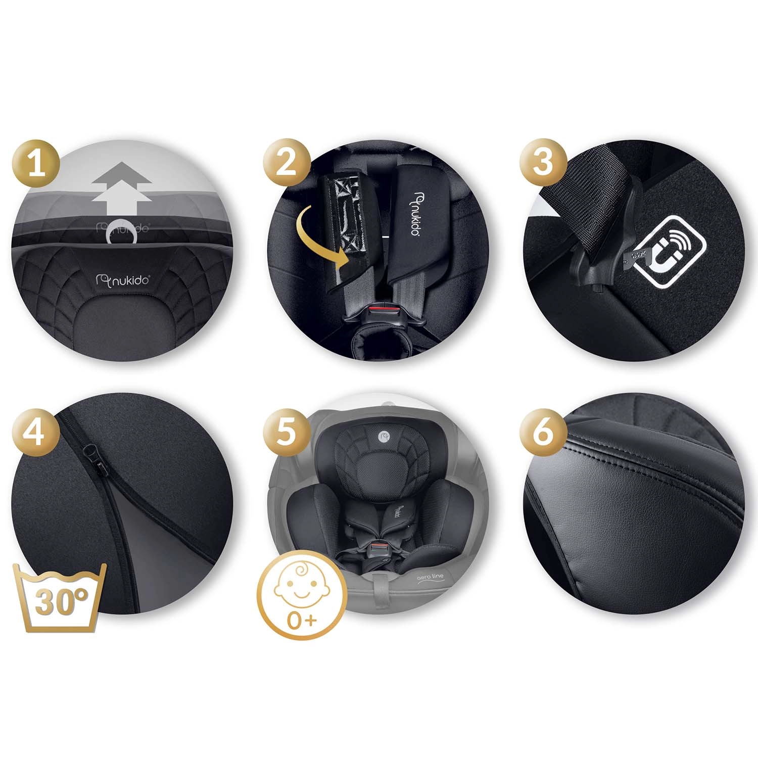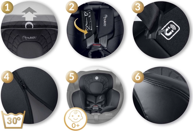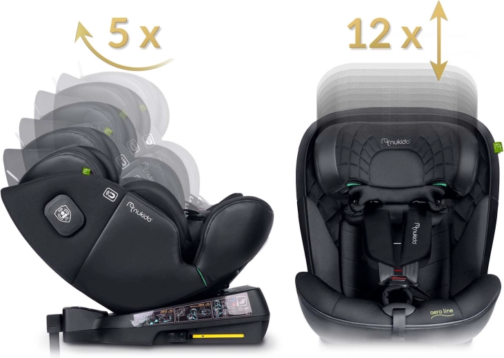 NUKIDO Aero Line je prémiová autosedačka, ktorá kombinuje najvyššie bezpečnostné štandardy i-Size s dlhodobým komfortom od narodenia až približne do 12 rokov. Vďaka otočnému systému 360° ľahko pripútate dieťa z boku a zvolíte smer jazdy RWF/FWF podľa veku a výšky. Mäkké prešívané čalúnenie, ergonomické tvarovanie a vložka pre novorodencov zaisťujú pohodlie aj na dlhých cestách.