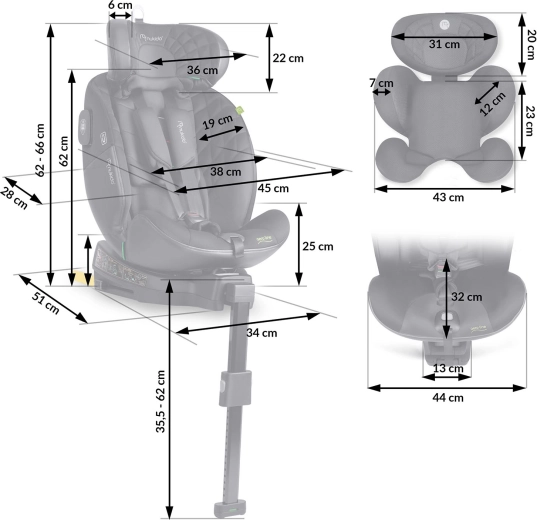 Pokročilá SIP – Side Impact Protection s bočnými tlmičmi energie, oporná noha a pevné ISOFIX kotvy poskytujú stabilitu a ochranu pri náraze. 12-polohová opierka hlavy rastie s dieťaťom, 5 polôh sklonu zvyšuje komfort spánku a päťbodové pásy s protišmykovými návlekmi držia bezpečne na mieste. Snímateľný poťah možno prať pre jednoduchú údržbu.