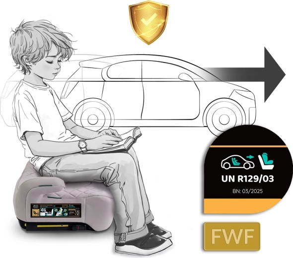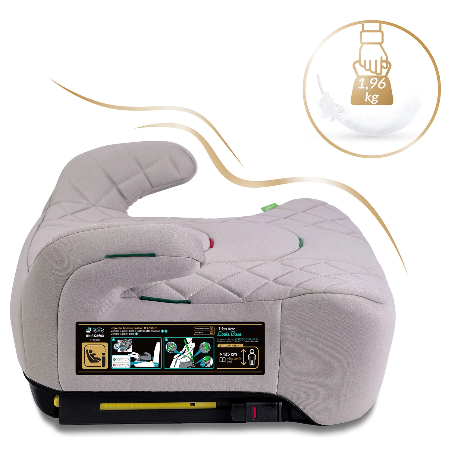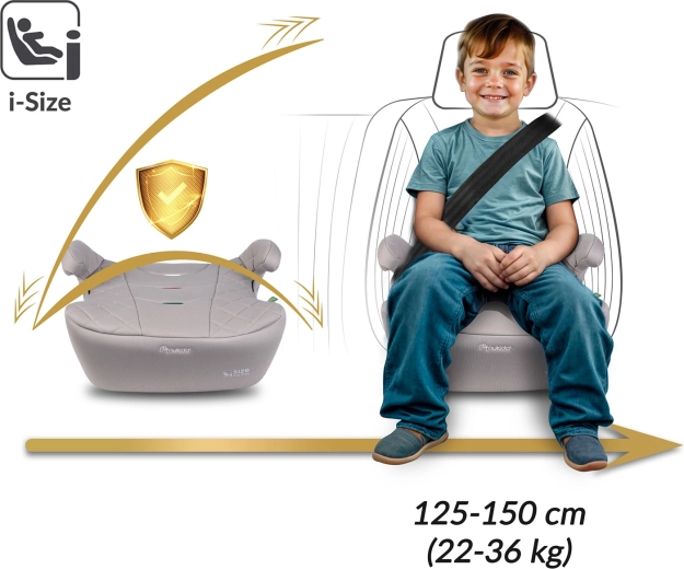Bezpečný a pohodlný podsedák pre staršie deti s výškou 125–150 cm a hmotnosťou 22–36 kg s uchytením ISOFIX. Spĺňa prísnu normu ECE R129 / i-Size, ponúka rýchlu a istú inštaláciu, ergonomicky tvarované sedadlo, mäkké polstrovanie a ľahko snímateľný poťah na pranie pri 30 °C.