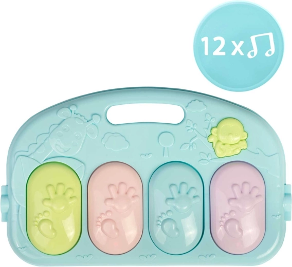 Farebné klávesy reagujú na dotyk aj kopanie, svietia a prehrávajú 12 melódií. Piano možno vybrať z podložky a používať samostatne alebo ako hudobný stolík.