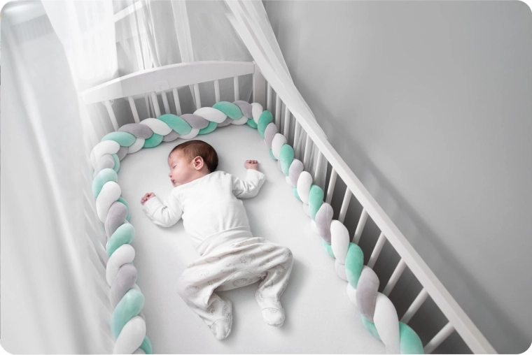 Mäkký, antialergický materiál bez ostrých častí chráni bábätko pred nárazmi do priečok a vytvára pokojné, útulné prostredie v postieľke.