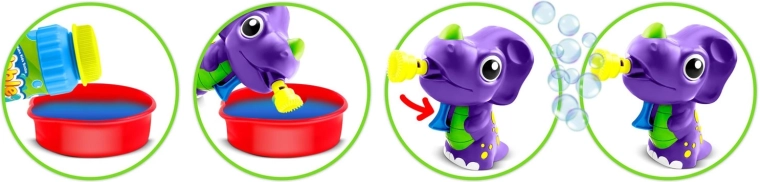 Roztomilý bublifuk v tvare triceratopsa od značky Ricokids vyčarí behom chvíľky množstvo farebných bubliniek bez potreby batérií. Vďaka mechanickej spúšti je hračka jednoduchá na používanie aj pre malé deti (3+) a tichá prevádzka bez melódií poteší rodičov aj susedov. Súčasťou balenia je tiež štartovacia náplň do bublín a dárčekové balenie.