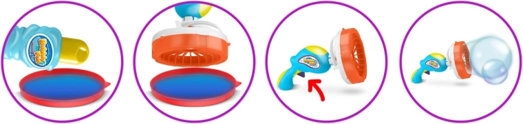 Súčasťou je roztok na bubliny; stačí vložiť 3× AA batérie (nie sú v balení) a zábava sa môže začať.