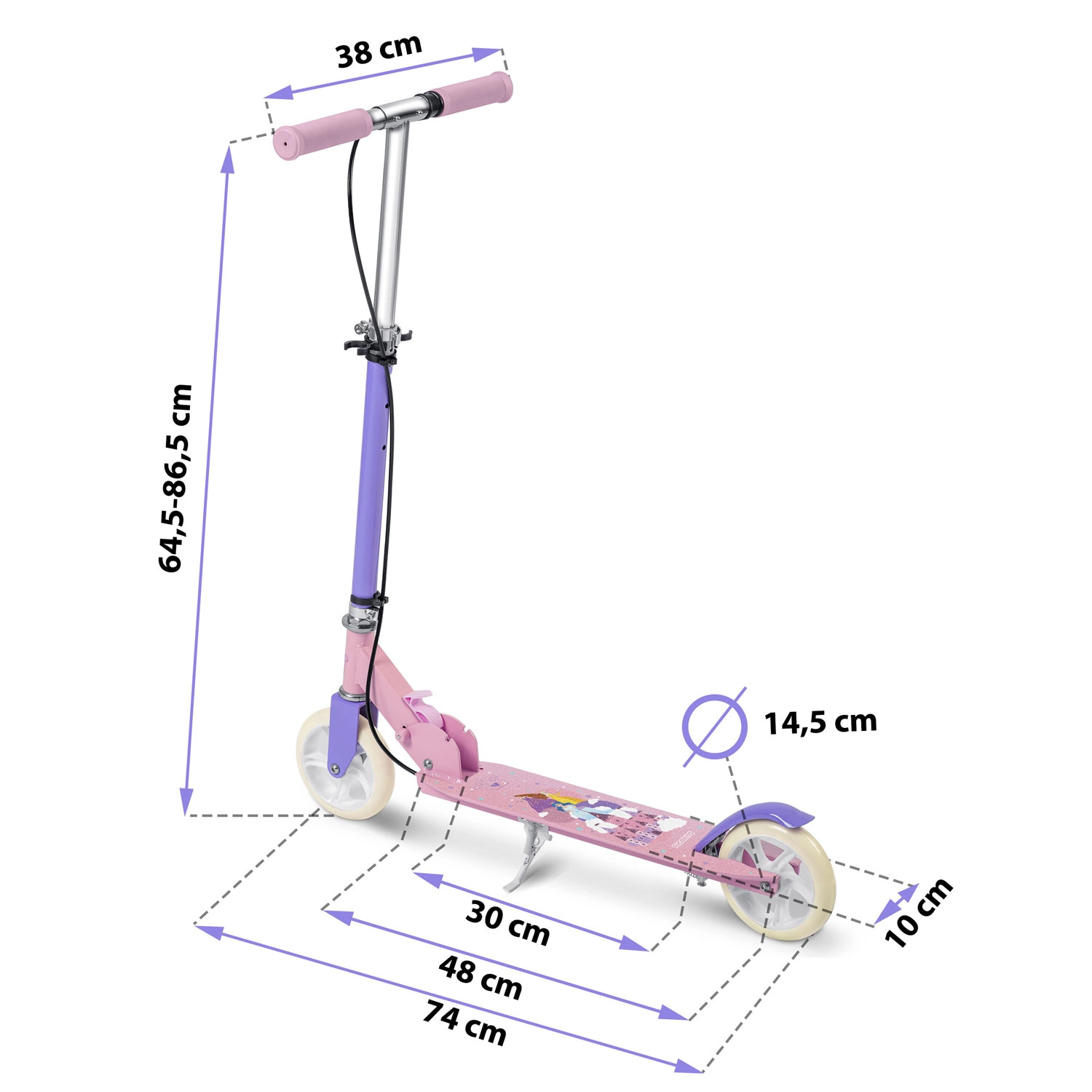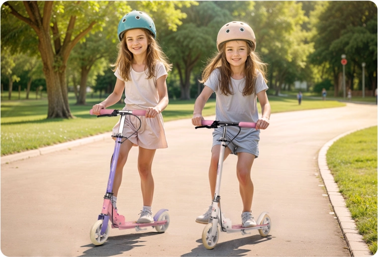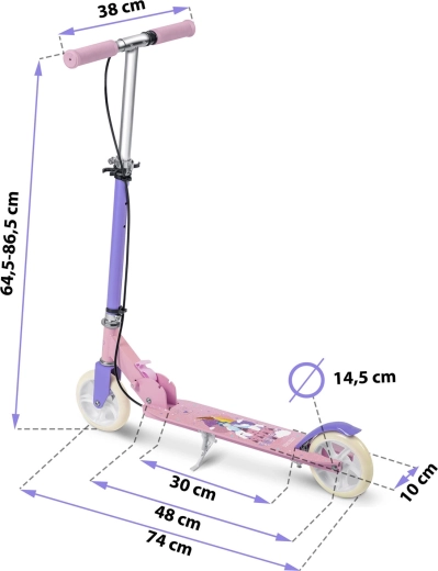Kolobežka RICOKIDS Kodi Princezné je ideálnou voľbou pre prvé jazdy aj každodennú zábavu. Nízky a široký nášľap uľahčuje učenie rovnováhy, ľahká konštrukcia prináša jednoduché ovládanie a skladací mechanizmus sa postará o jednoduché prenášanie aj uloženie. Štýlový ružovo‑fialový vzhľad s motívmi princezien poteší malé jazdkyne, zatiaľ čo rodičia ocenia dôraz na bezpečnosť a komfort.