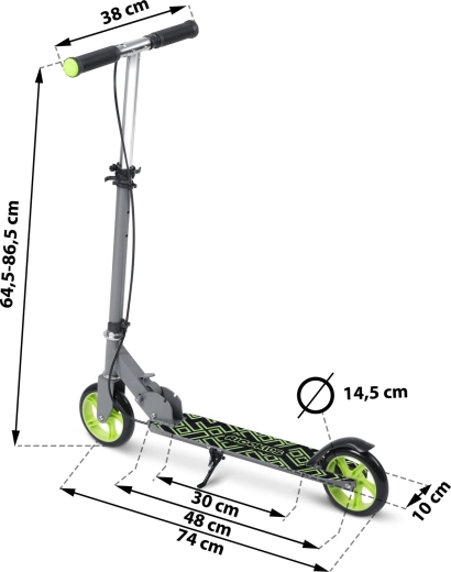 Nízka hmotnosť a skladací mechanizmus uľahčujú prenášanie aj skladovanie. Nastaviteľné riadidlá zabezpečia správne nastavenie pre rast dieťaťa.