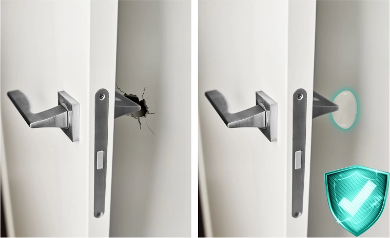 Chrániče stien z kvalitného pružného materiálu tlmia nárazy a zabraňujú odreninám, priehlbinám a odlupovaniu maľovky. Transparentný dizajn je nenápadný, takže zostane zachovaná estetika vášho domova. Jednoduchá montáž bez náradia – stačí odmastiť povrch, zlúpnuť fóliu a pevne pritlačiť.