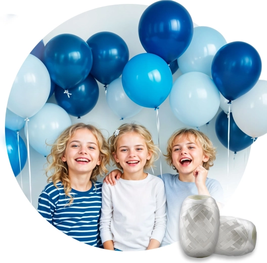 V balení nájdete všetko, čo potrebujete: 30 latexových balónikov v bielej, svetlomodrej a tmavomodrej farbe a 40 metrov striebornej dekoračnej stuhy na uviazanie alebo tvorbu girland. Set je ideálny na narodeniny, svadby, baby shower, detské párty aj tematické fotokútiky.