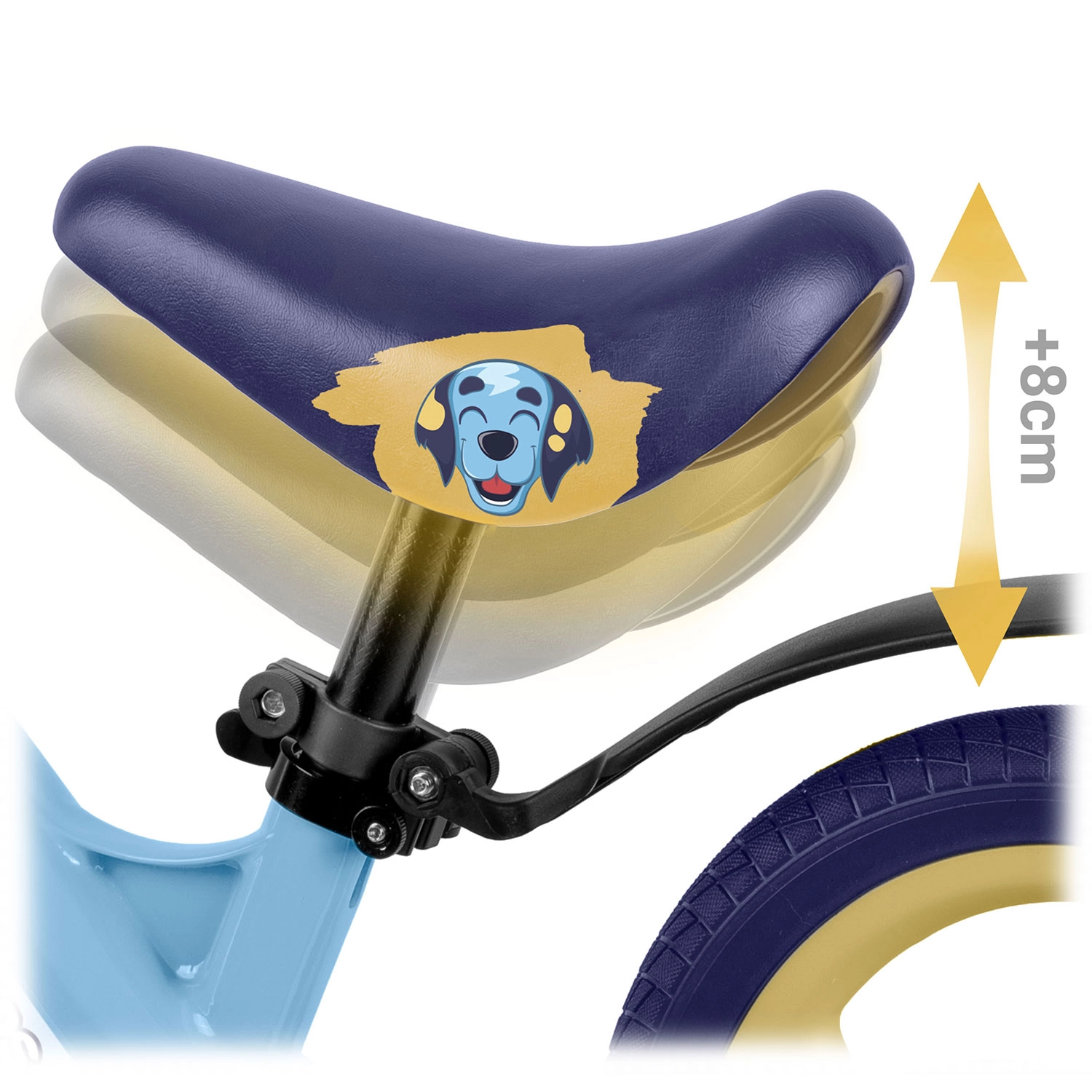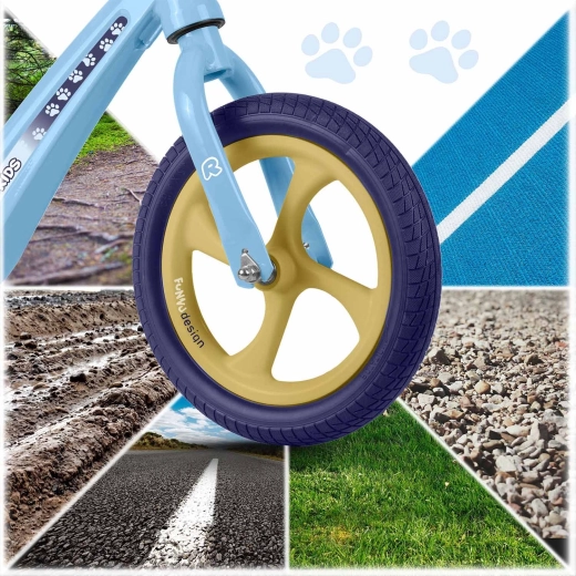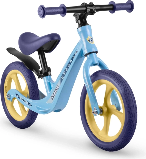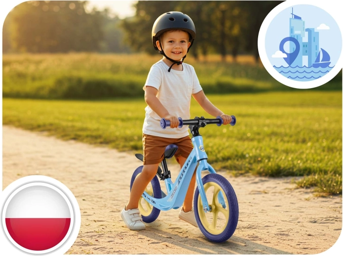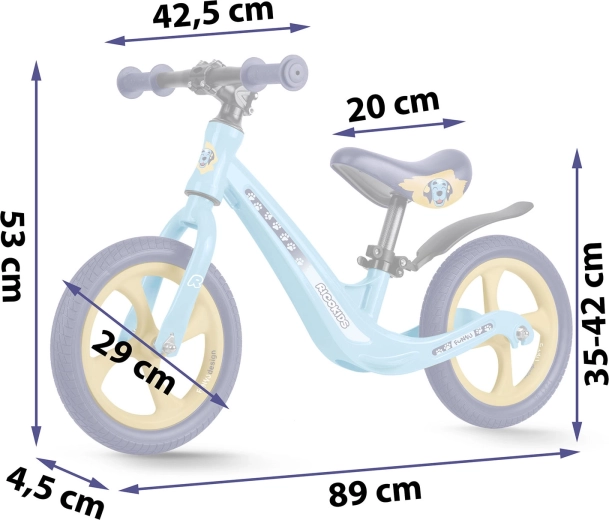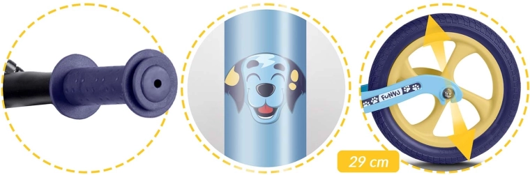 Ergonomicky tvarované, mäkké penové sedlo s plynulou reguláciou výšky (cca 35–42 cm) rastie s dieťaťom a umožní pohodlnú jazdu v každej fáze vývoja. Gumové rukoväte so zarážkami chránia ruky a zlepšujú istotu úchopu. Odrážadlo podporuje sebavedomie, koncentráciu a prirodzený prechod na klasický šliapací bicykel.