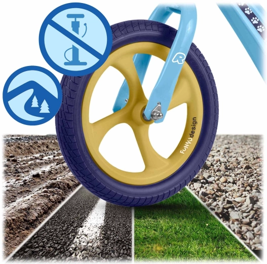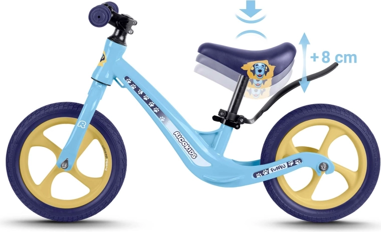 Ricokids Funnu je ideálne prvé odrážadlo pre malých jazdcov. Vďaka ultraľahkej konštrukcii si s ním deti ľahko poradia samy a rodičia ho bez námahy prenesú do parku či po schodoch. Horčíkový rám zaručuje vysokú pevnosť pri nízkej hmotnosti a kolesá z EVA peny sú bezúdržbové, tiché a neprederaviteľné – perfektné na trávu, asfalt aj štrk.
