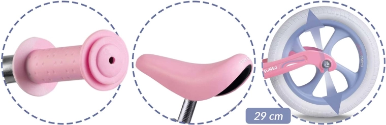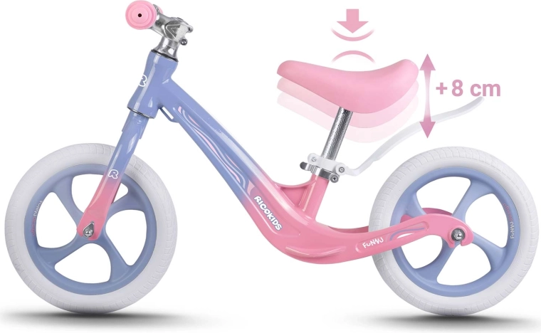 Ricokids Funnu je odrážadlo navrhnuté tak, aby deťom uľahčilo prechod na klasický bicykel s pedálmi. Magnéziový rám zabezpečuje výnimočnú ľahkosť a pevnosť, zatiaľ čo penové EVA pneumatiky nevyžadujú dofukovanie a sú odolné voči prepichnutiu, vlhkosti aj nízkym teplotám. Ergonomické sedlo s mäkkým polstrovaním a široké možnosti nastavenia výšky poskytujú pohodlie v každej fáze rastu.