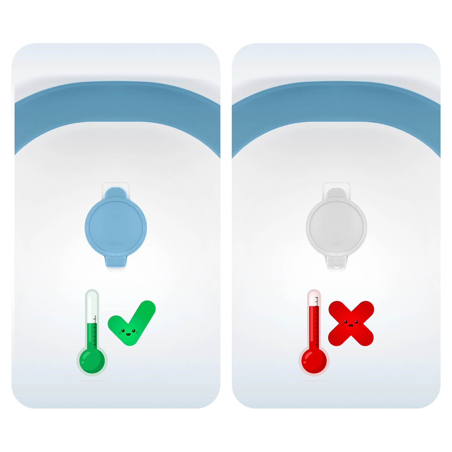 Voda je neustále pod kontrolou vďaka integrovanému teplomeru s presnou sondou a čitateľným LCD. Zátka navyše zmení farbu pri prekročení 38 °C pre extra bezpečie.
