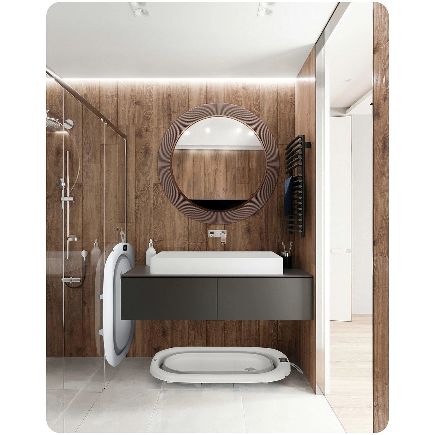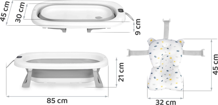 Stabilná konštrukcia s rozkladacími nohami sa ľahko zloží do kompaktnej podoby. Protišmykové nožičky a praktický držiak sprchy uľahčia každodenné kúpanie.