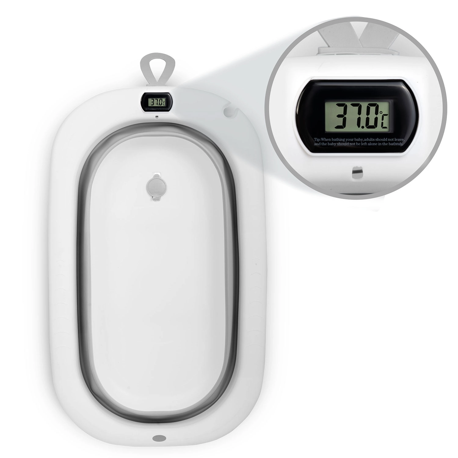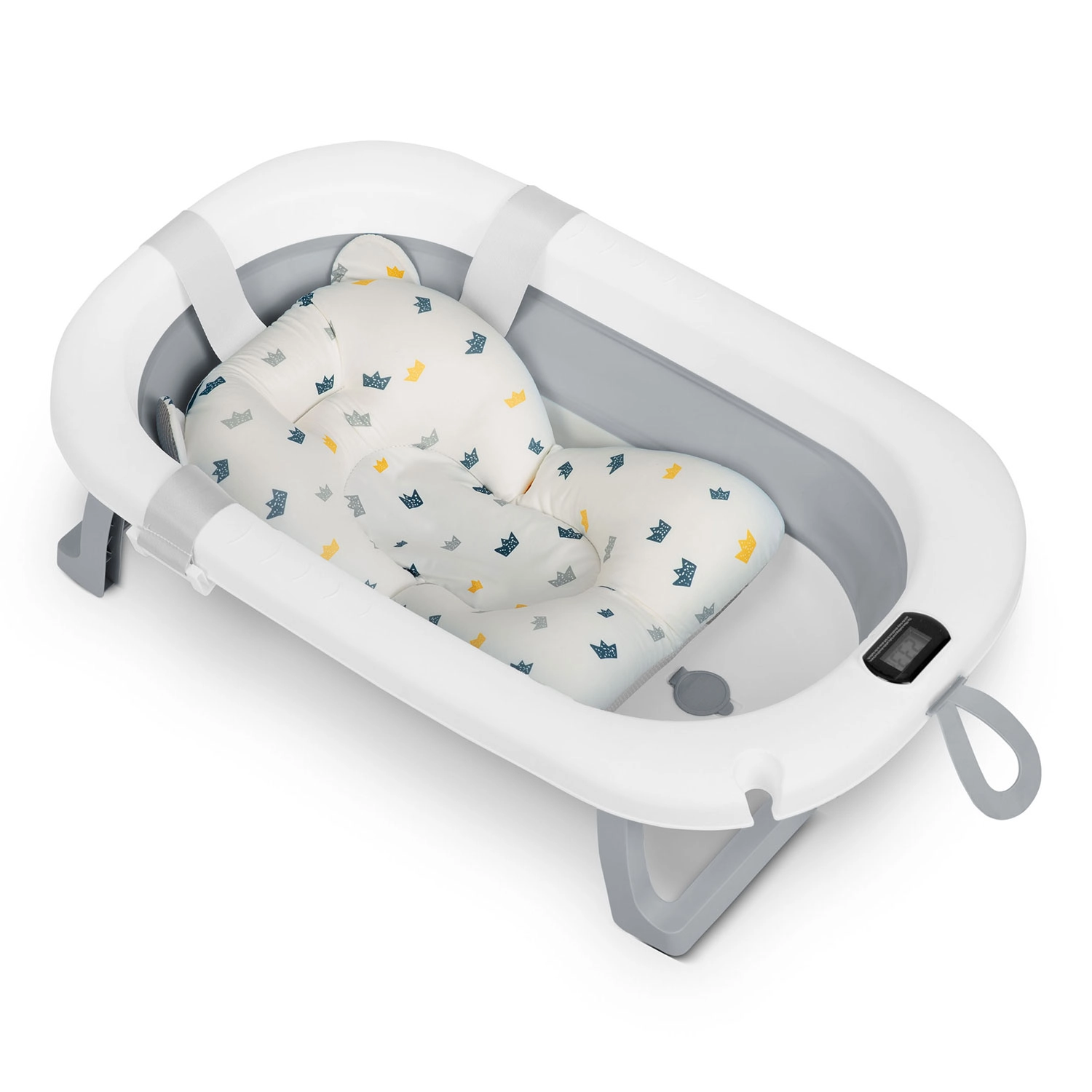 Integrovaný teplomer s presnou sondou priebežne meria teplotu vody. Na prehľadnom displeji ľahko skontrolujete, či je kúpeľ pre bábätko ideálny.