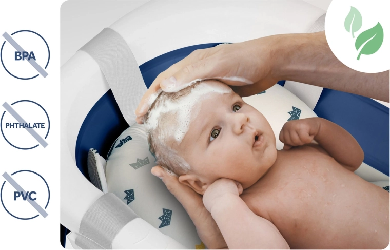 Ergonomicky tvarovaná podpora jemne drží hlavičku a chrbát bábätka. Tri nastaviteľné popruhy zaistia stabilné uchytenie bez pošmyknutia a rýchloschnúci materiál zaručí hygienu po každom kúpaní.