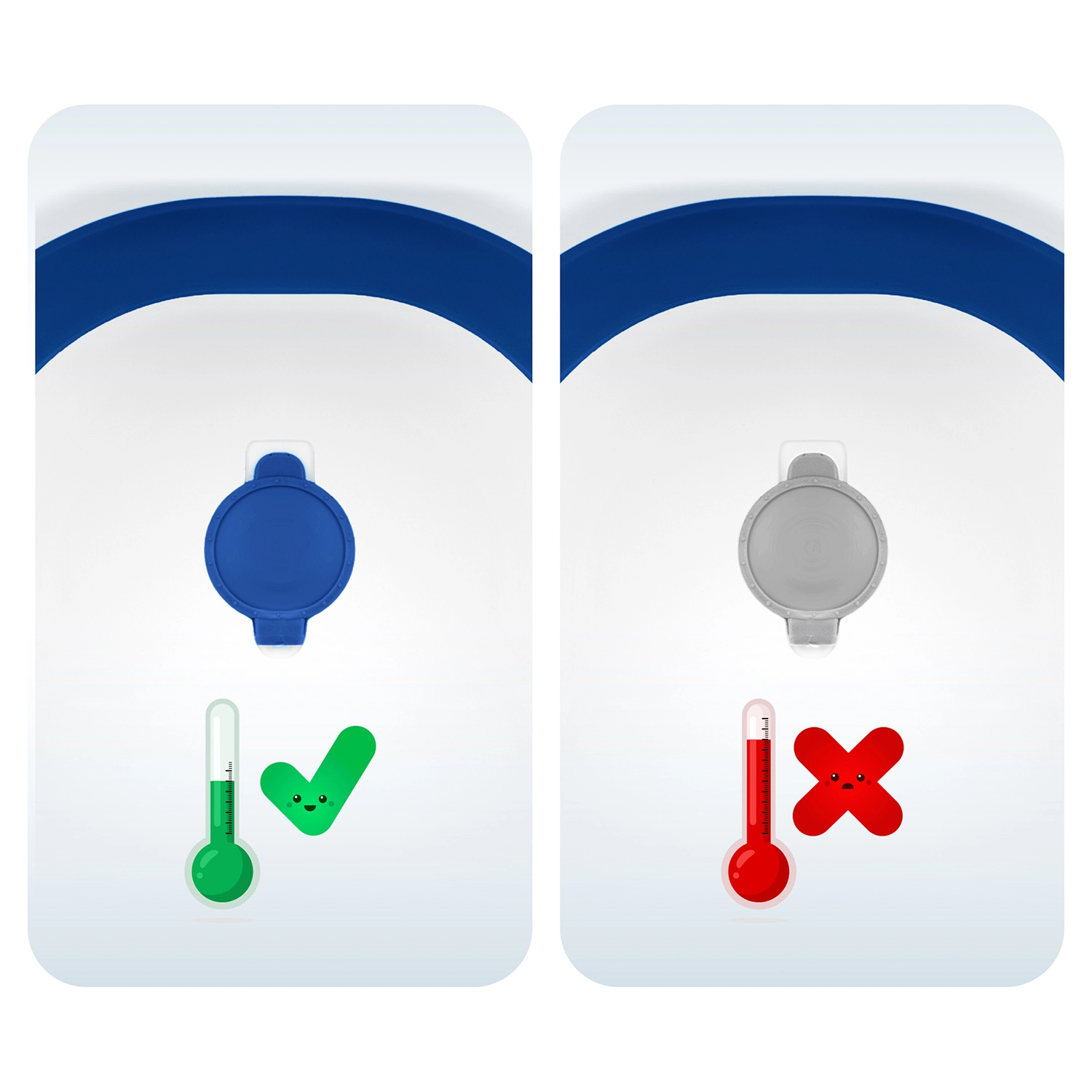Sklopné nohy s protišmykovými zakončeniami udržia vaničku pevne na mieste. Zátka zmení farbu pri prekročení 38 °C, takže máte teplotu vody vždy pod kontrolou.